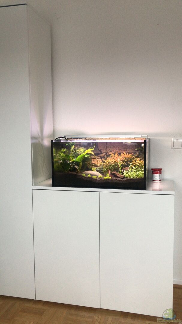 Das Aquarium wurde bei der Firma Aquarienkontor in Haltern am See in Auftrag gegeben. Im Rahmen der Einlaufphase wurde die Idee entwickelt einen speziellen Aufsatzhalter für die Scaping-Light Basic LED zu entwickeln um den Abstrahlwinkel zu optimieren und die Ausleuchtungsfläche zu vergrö??ern. Mehr unter Technik und im Update vom 24.02.2019.