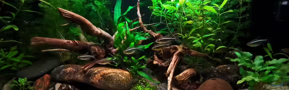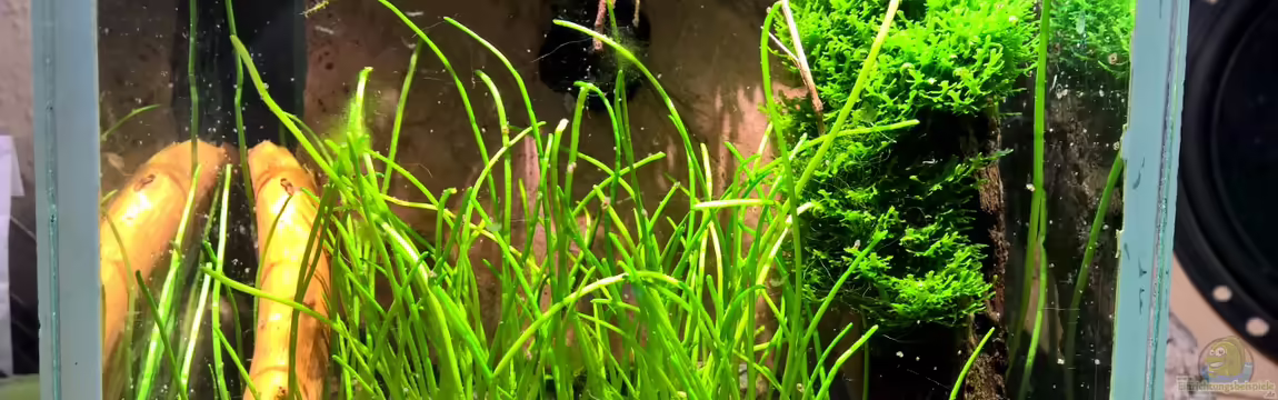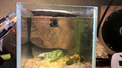 Das Becken hat sich sehr schön entwickelt. Anfangs musste ich mindestens alle 2 Tage Wasser wechseln, da das eingesetzte Holz das Wasser stark gefärbt hat. Nun mit ausgeprägtem Pflanzenbewuchs und der Filterung hält das Wasser mind. 5 Tage. Es muss nur gelegentlich etwas nachgefüllt werden. Vor ein paar Tagen sind dann auch die ersten Wasserflöhe eingezogen. Ob sie sich vermehren kann ich noch nicht sagen. Allerdings ist die Schneckenpopulation stark am wachsen.