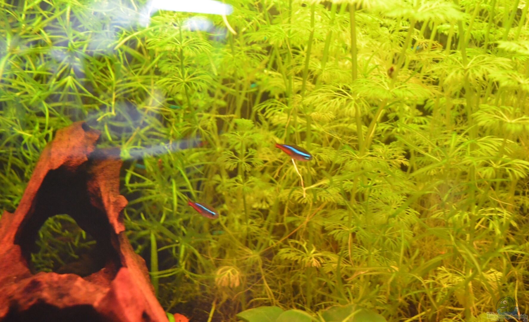 Visueller Farbeindruck. Verstärkt insbesondere die Rot-; Orange- und Blautöne der Fische. Rötliche Pflanzenfarben erscheinen sichtbar strahlender