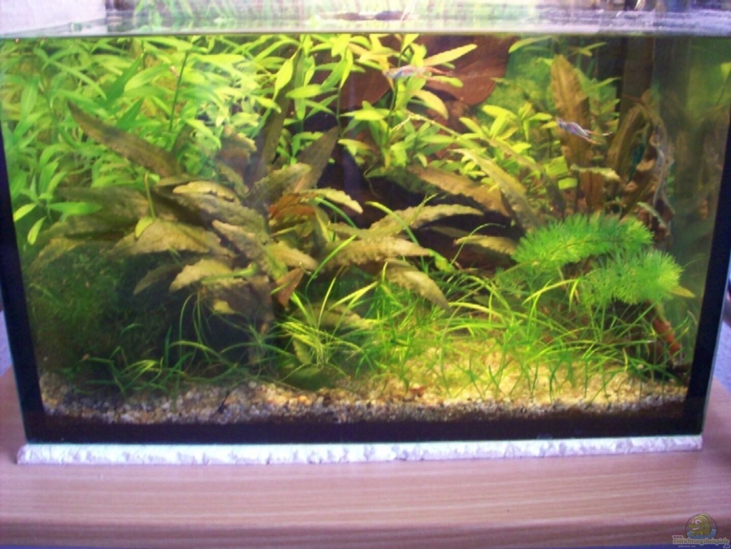 07.02. Hatte leider einige Schwierigkeiten - mein CPO hat die Häutung nicht geschafft und ist gestorben ; dann hatte ich Planarien drin- die ´Knoblauch-Methode´ schaffte Abhilfe (wenn auch nicht ganz), danach hatte ich Scheibenwürmer und bekam von einer Freundin ihren Zwergfadenfisch ausgeliehen...er sollte die Würmer alle fressen - hat er auch getan...aber leider meine Garnelen auch....