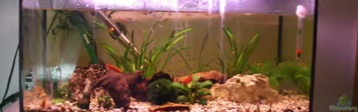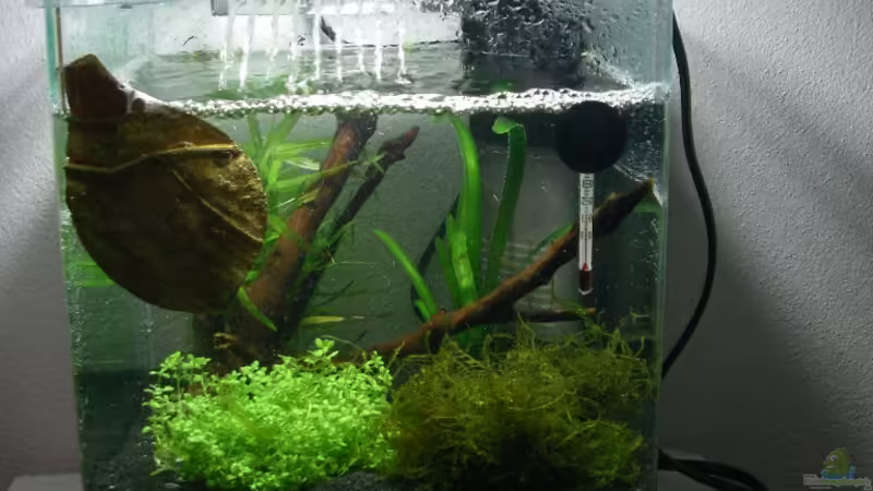 am 15.5.2010 Wasserstand erhöht , Rückwandfolie angeklebt ( hat sich 2 Stunden später wieder zum Teil gelöst , deswegen ist sie jetzt wieder weg ) , Thermometer versetzt , Kies etwas nach hinten gezogen und etwas Kies und Bodengrund entfernt