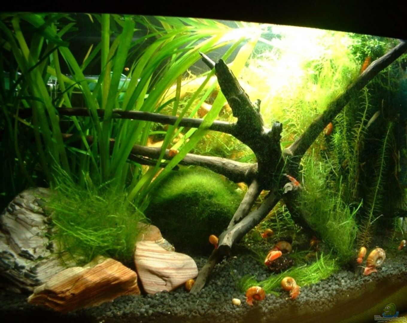 Wie machen sich die Posthornschnecken? Wenn ich an meine Turmdeckel denk....erst hatte ich zwei - von wegen Durchlüftung des Bodengrundes, weil die sich dort ja durchgraben - mittlerweile sind es unzählbare, obwohl ich gar nicht sooo viel füttere. Und meine Raubschnecken mögen die auch nicht wirklich zum Frühstück, da sind immer erst die Quellblasenschnecken dran.