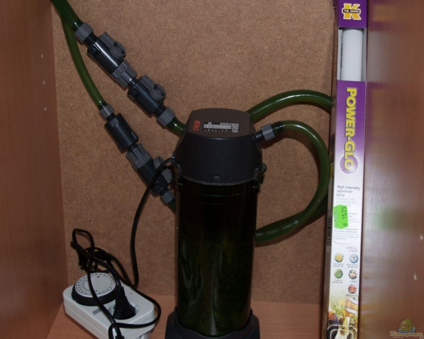 - 1/4 des Filters wurde mit Sera biopur ausgestattet und 3/4 des Filters mit Eheim Substrat pro