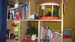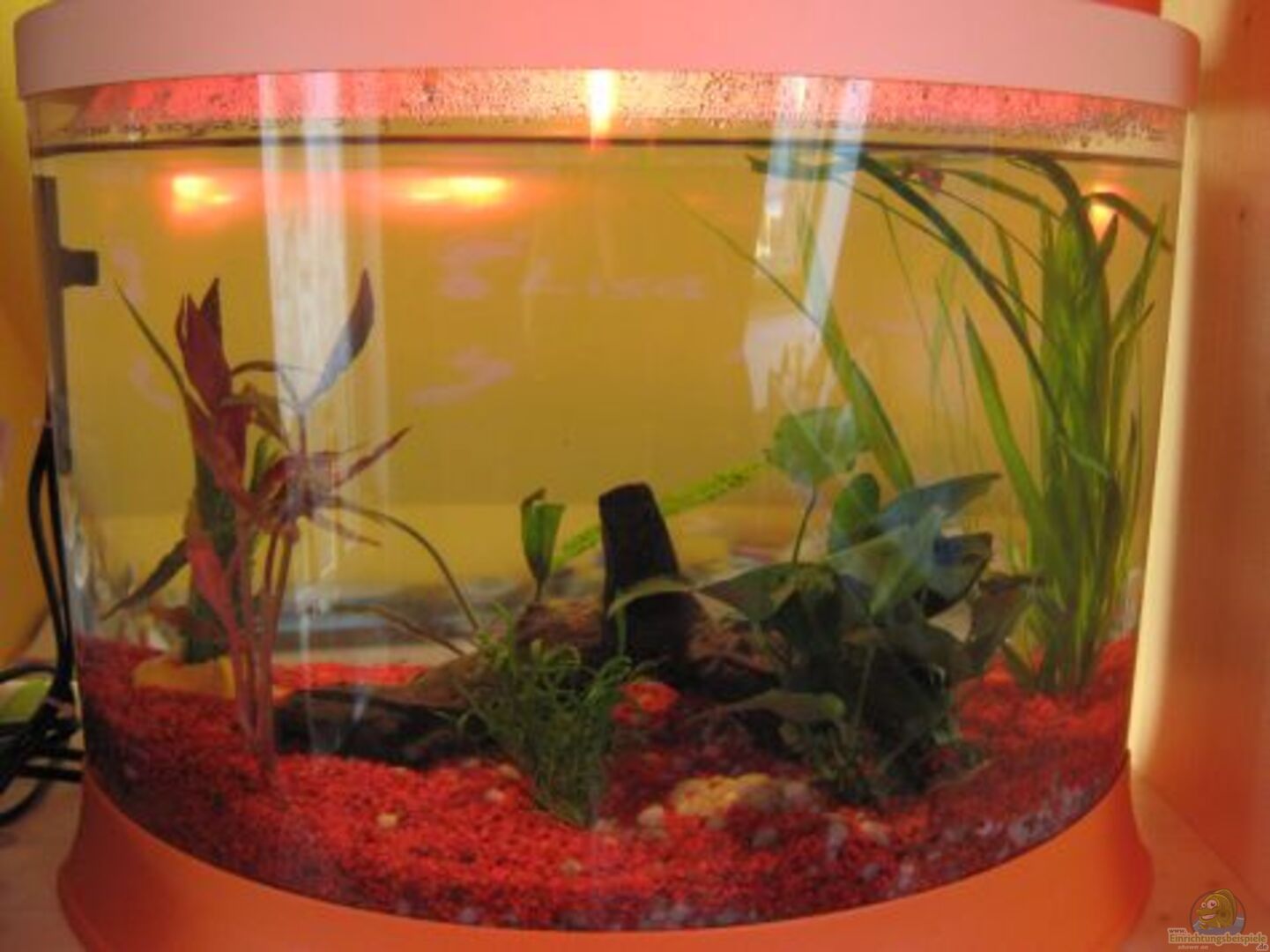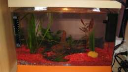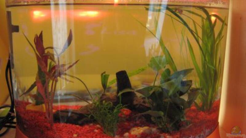 17.01.09 Aquarium wurde mit zwei Pflanzen ergänzt und eine Folienrückwand angebracht, gleichzeitig wrde auch wieder ein Wasserwechsel gemacht