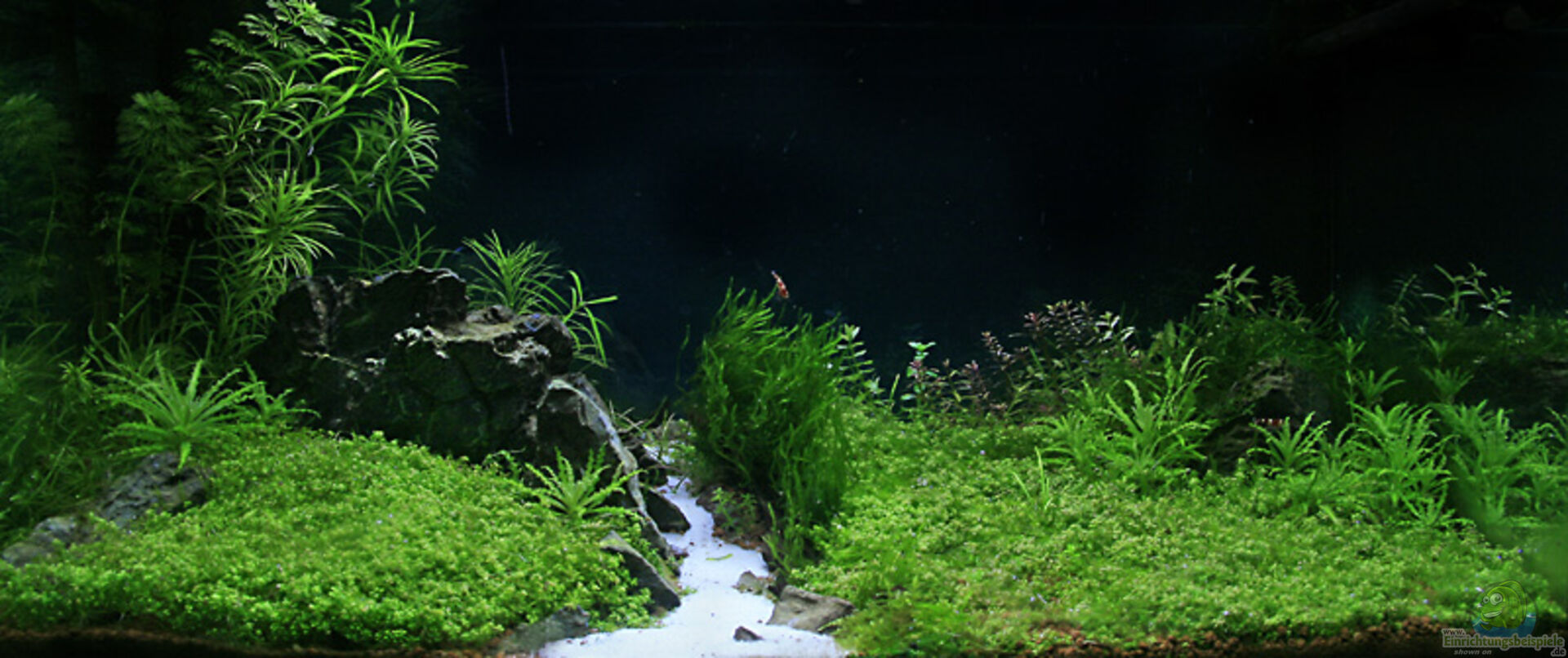 03.10.08: Wegen der vielen Anregungen: Ich habe tatsächlich vor, mit dem Becken am AGA Wettbewerb teilzunehmem, allerdings war die Deadline für dieses Jahr schon, also hei??t es ein Jahr warten... Aber das ist auch gut so, denn ich bin noch nicht 100%ig zufrieden, ich stelle bald mal neue Bilder ein, denn schon in den letzten vier Wochen hat sich so einges getan (keine Umdekorationen, aber die Pflanzen zeigen sich von immer schöneren Seiten :-) Bin auch noch am herumexperimentieren mit den richtigen Düngerkomponenten und habe vor, den EasyCarbo sowie Eudrakon N und Eudrakon P auszuprobieren (momentan gebe ich keinen extra Stickstoff und Phosphat hinzu, wegen des fehlenden Fischbesatzes könnte das aber evtl. nötig sein). Warum ich keine Fische darin halte? Ganz einfach, ich mag die Ruhe, die eine Unterwasserlandschaft ausstrahlt und die geht meineserachtens durch hektische kleine Schwarmfische verloren. Irgendwie schauen die Fische in so einem Layout auch aus wie fliegende Fremdkörper am Himmel, nicht zu vergessen, dass sie so auch keine Rückzugsgebiete und Verstecke haben, die für eine erfolgreiche Pflege nötig wären. Da sind mir Garnelen lieber :-)