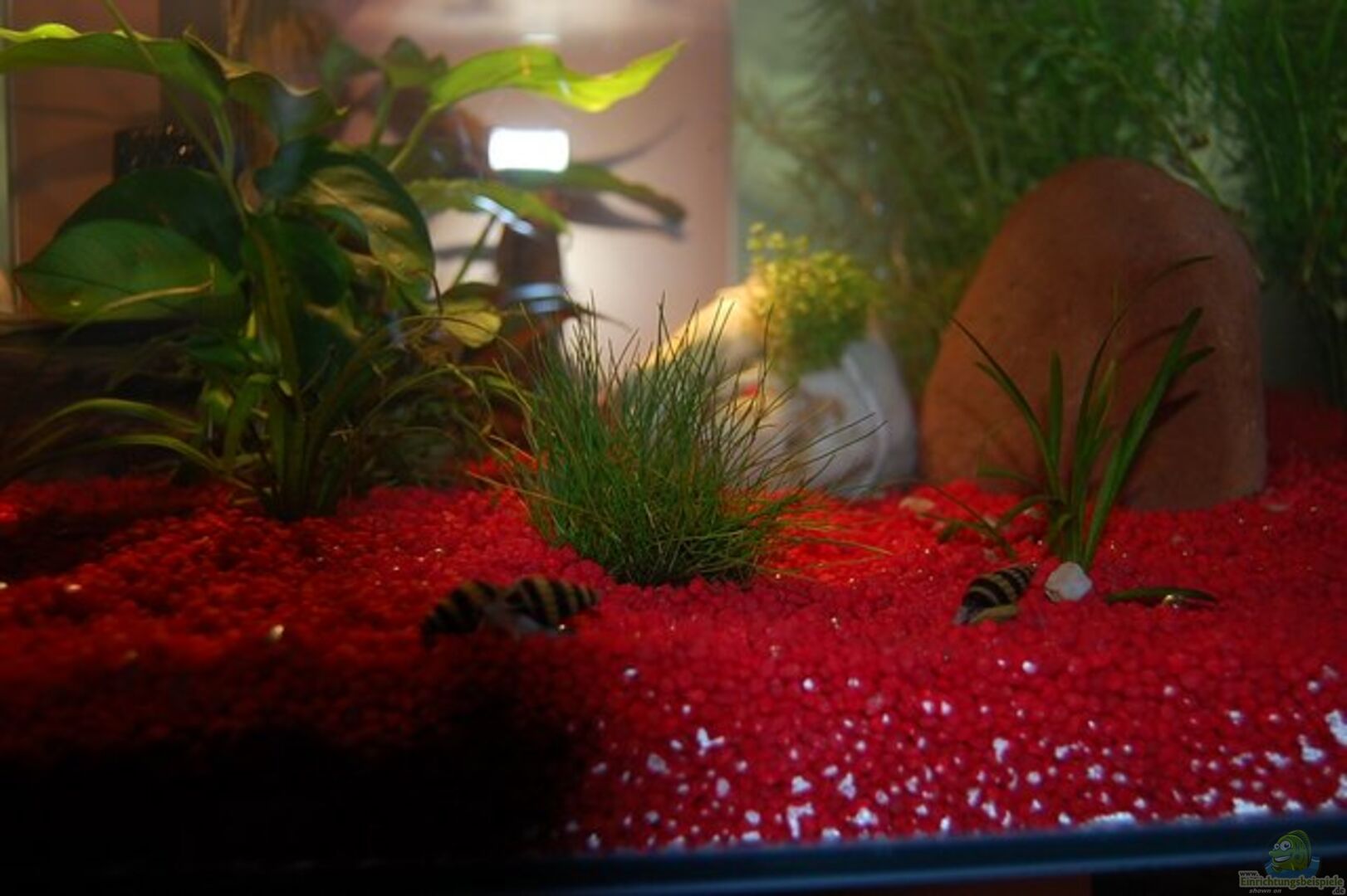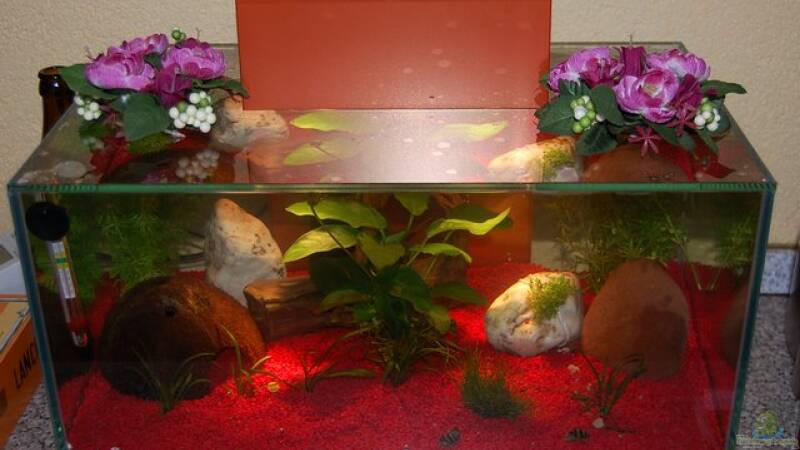 ein sehr unnatürliches Becken (roter Kies und Blumendeko) aber Geschmackssache. Wenn Futter, Wasserwerte usw. den zukünftigen Bewohnern entsprechen o.k. Hat das Becken einen versteckten Zugang oder wie geht das mit "sechsseitig verklebt"?