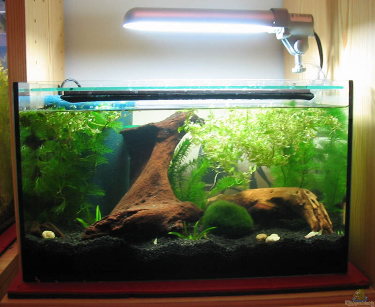 Mein erstes, selbstgeplantes und eingerichtetes Becken mit evtl. unpassendem, übernommenen Besatz. Davon konnte ich allerdings nichts merken. Die Tiere haben alle ihr eigenes Versteck und bekriegen sich nicht.
