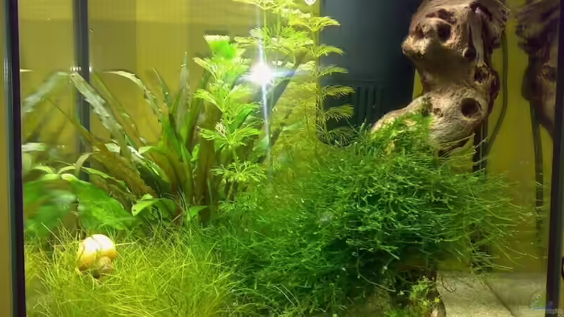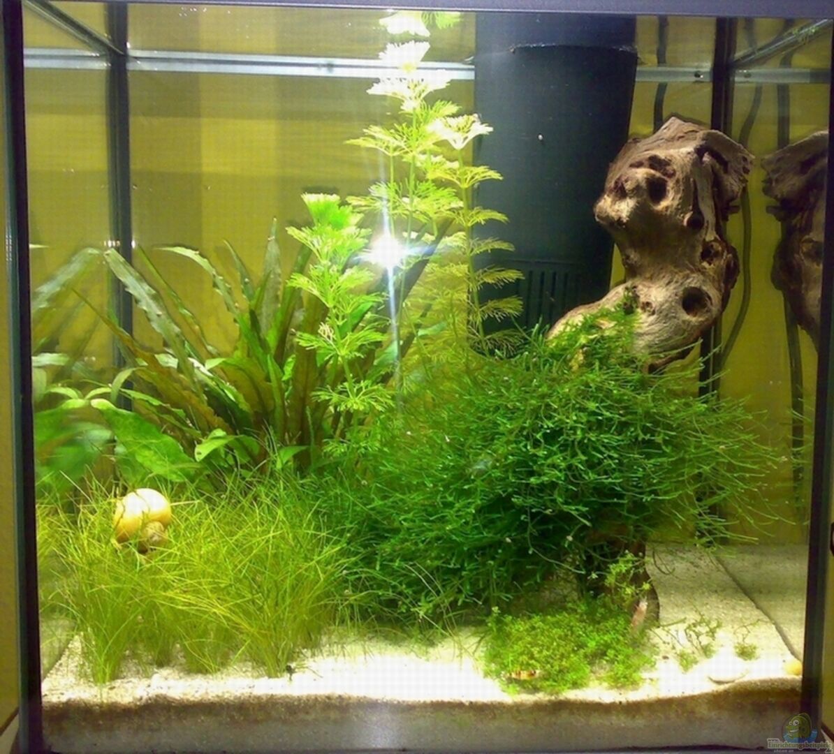 Das Moos hat einen tollen Wuchs, ich würde es sogar schon zurückschneiden und damit dann die Wurzel oben noch bepflanzen. Damit verschwindet dann auch der Innenfilter nach einiger Zeit.