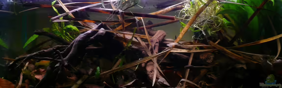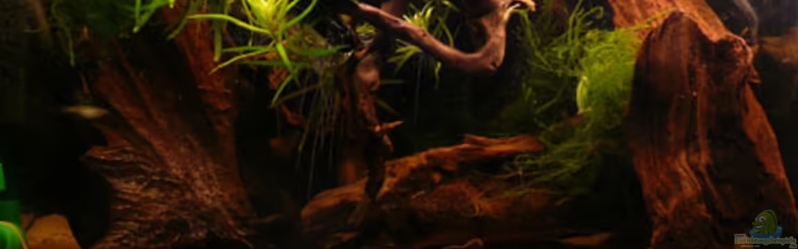 Für die Darstellung von Büschen und Bäumen wurde der Braune Wasserkelch, Wasserpest, sehr kleine Riesenvallisnerienableger (die bald gegen Wasserpest ausgetauscht werden) sowie Javafarn benutzt, die einigerma??en geeignet erschienen.
