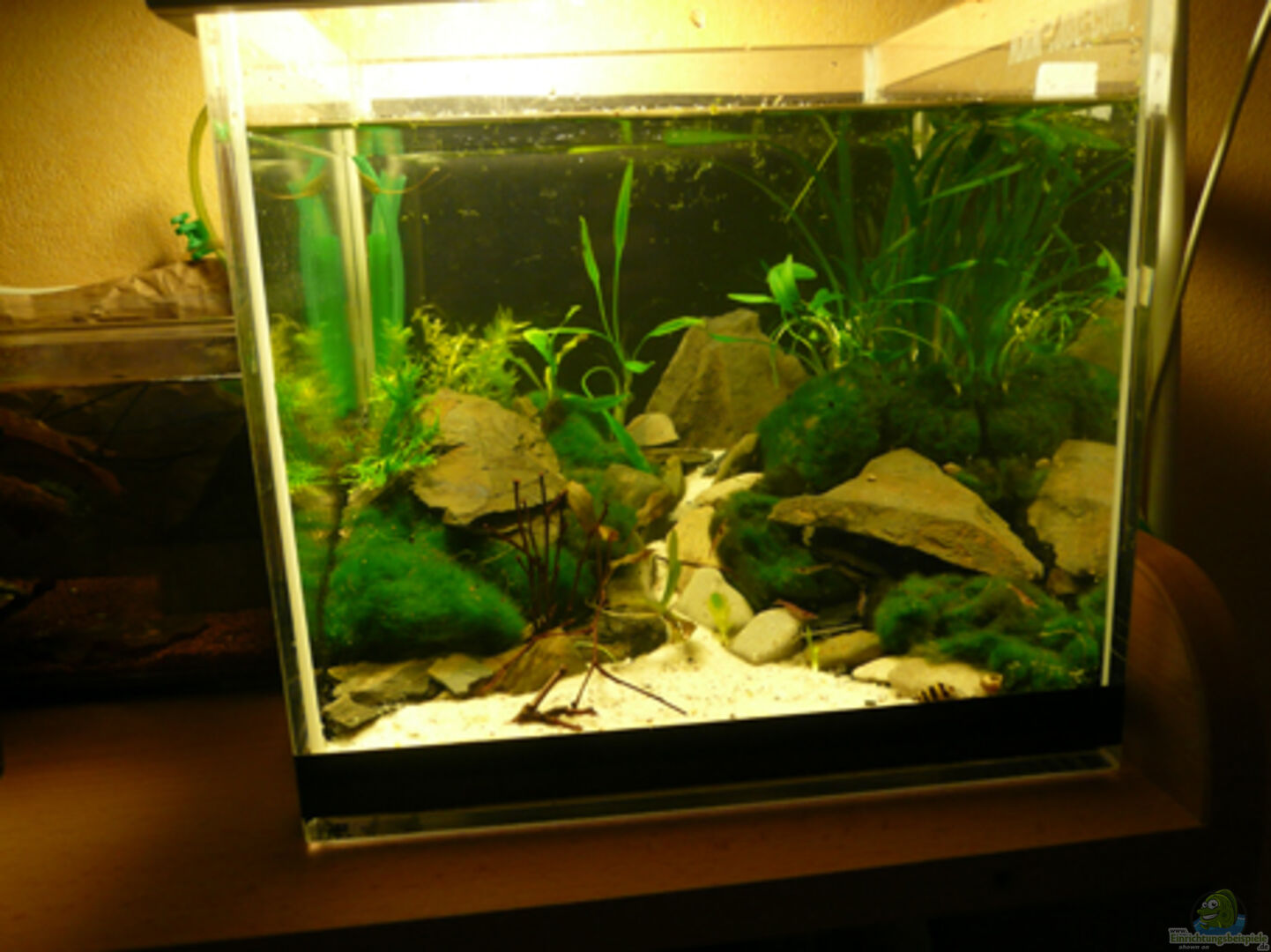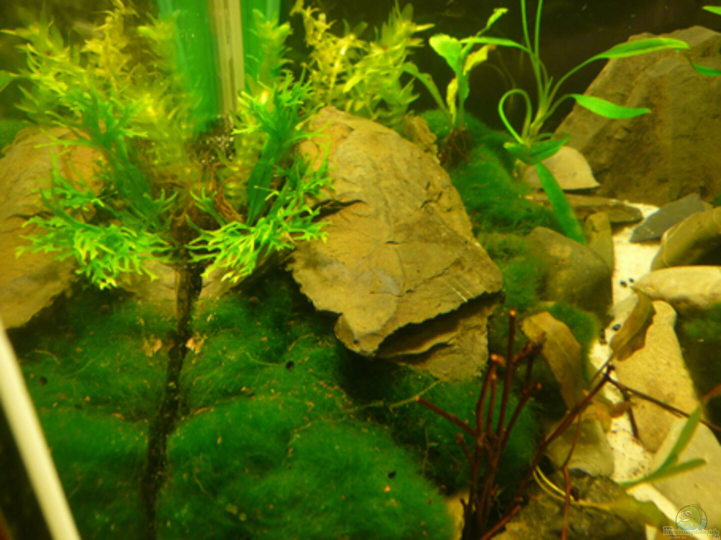 Für den teil, der die Wiese darstellen soll, hab ich wegen der ??hnlichkeit Mosskugeln ( Cladophora aegagrophila) verwendet.Diese werden früher oderspäter wieder rausfliegen und gegen was besseres ausgetauscht, ich wei?? nur noch nicht, gegen was.