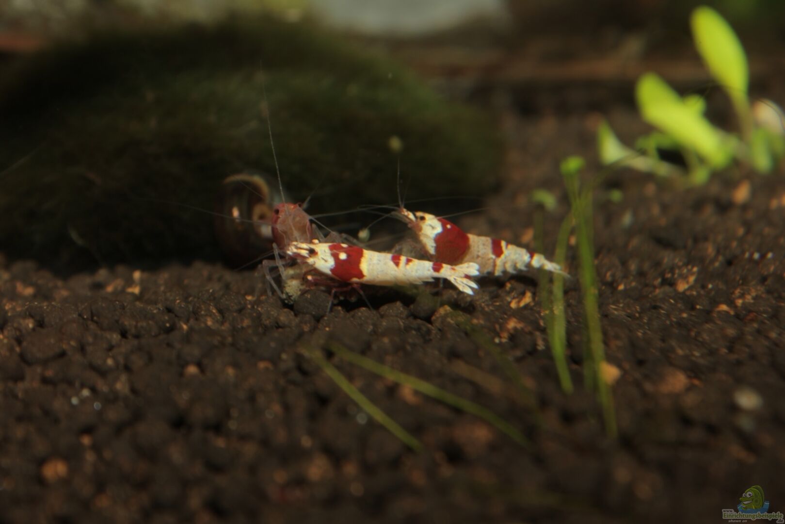 Gestrichenen Löffel Ebi Chi gefüttert, Möhre für die Geweihschnecken. Alles läuft nach Plan ;-) Wasserwerte werden nächste Woche nochmal aktualisiert.