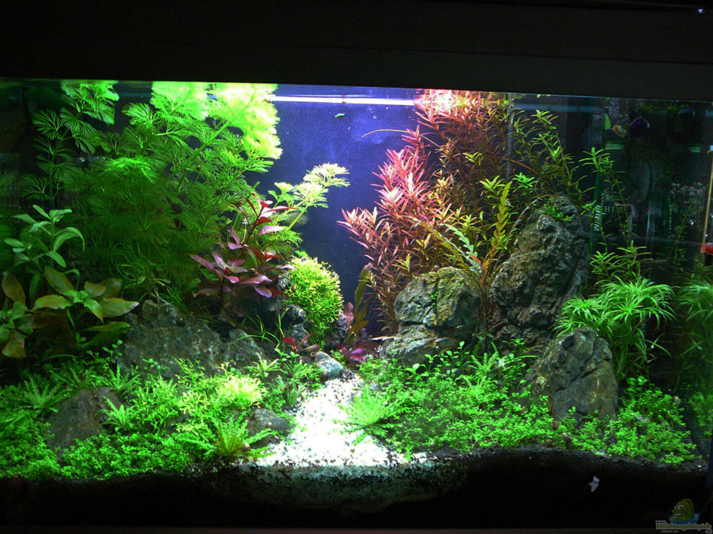 Von deinen Becken hat dieses hier das grö?te Potential im Bereich Aquascaping. Der Steinaufbau sieht gut aus, die Bepflanzung dicht und kräftig. Da das Becken ja scheinbar noch nicht so lange läuft werden die Pflanzen sicherlich noch den gewünschten Stand erreichen. Die Hintergrundpflanzen auf dem Hauptbild könnten ein bisschen Feinschnitt vertragen. Die Rotala hinten rechts im Becken wirkt ein bisschen verloren und ausgedünnt. Die Tonina wirkt gequetscht, sie wirkt viel schöner wenn sie ein bisschen freier steht.