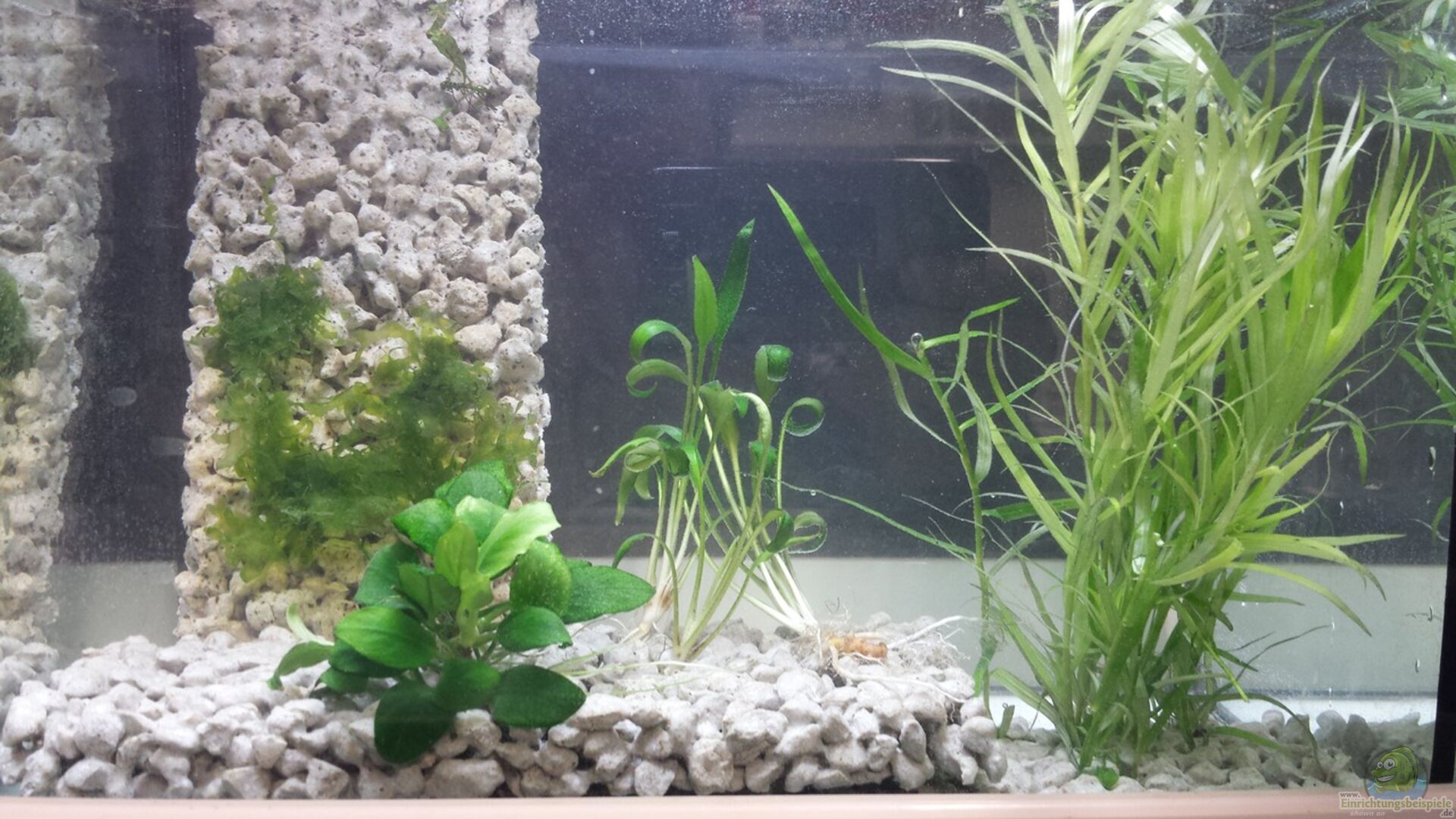 Besetz habe ich das Becken mit 4 Red Fire Garnelen im Dezember 2014. Inzwischen sind es eine Vielzahl mehr, genaue Zählungen habe ich nie durchgeführt, aber es gibt immer welche zu sehen, ohne das es nach einem Shrimp-Cocktail aussieht.