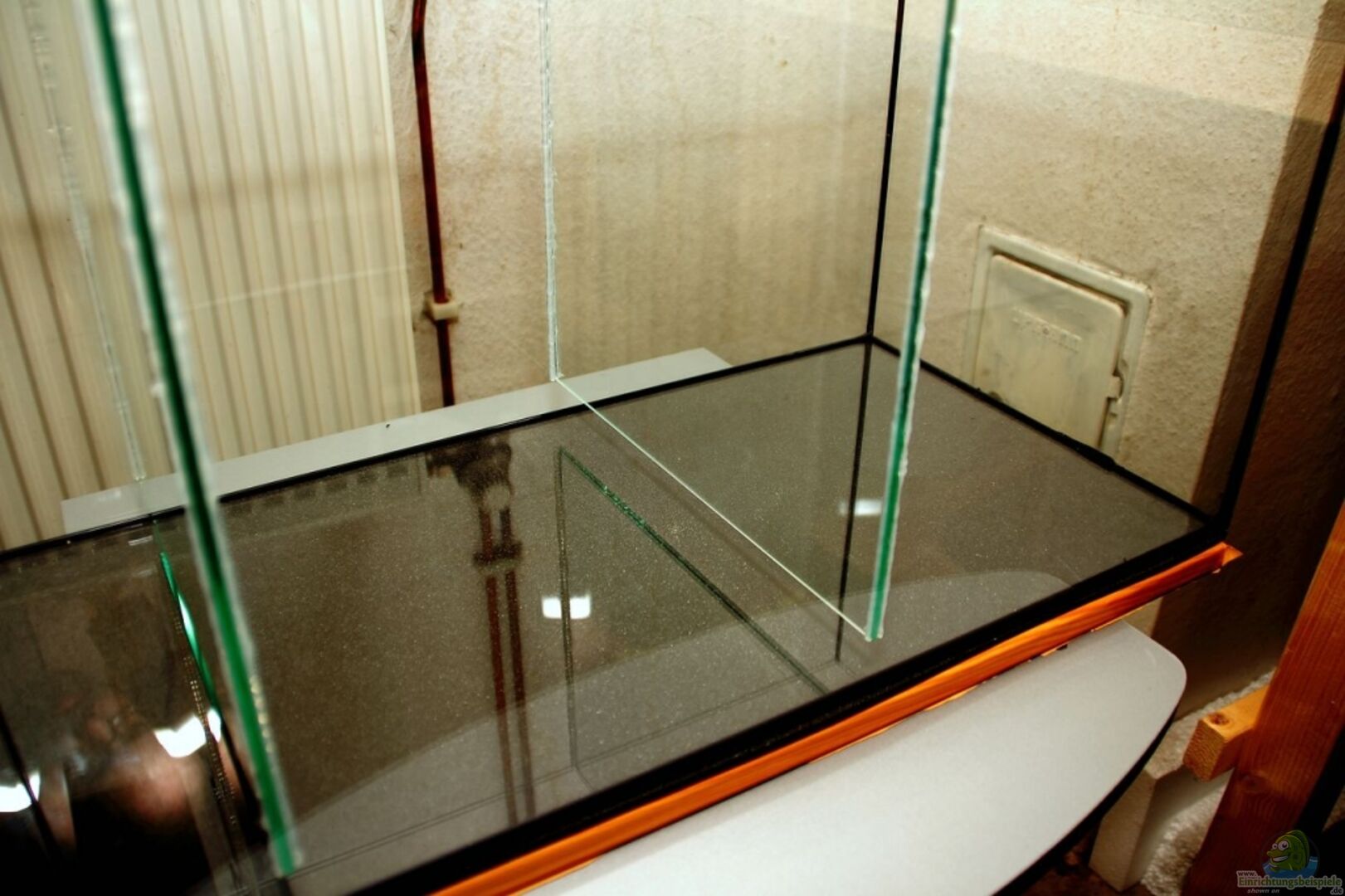 Das Becken steht im Keller auf einem Karlie Aquarienschrank.