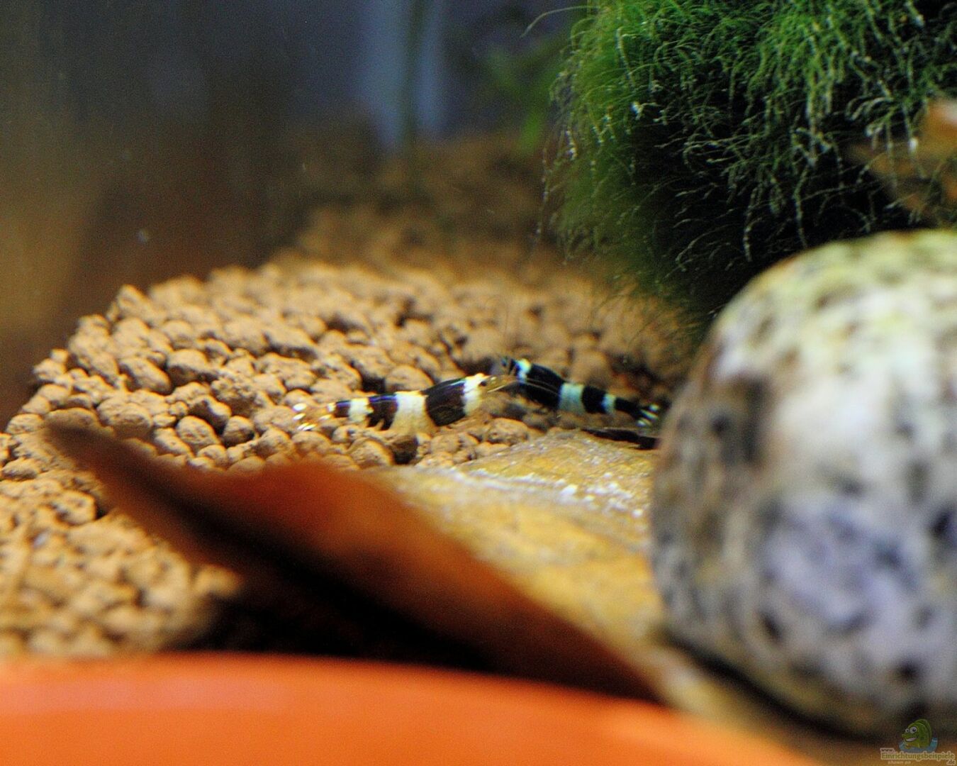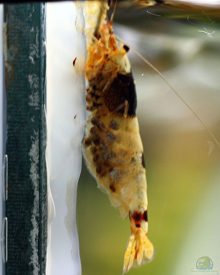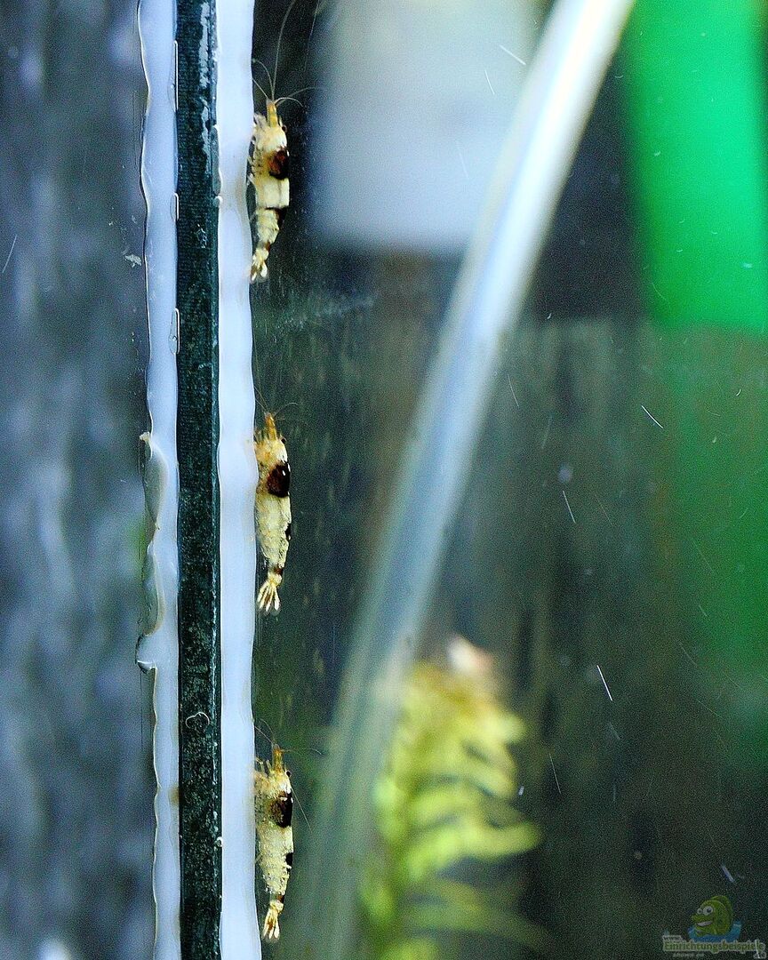 Das Becken mag für manche Augen spärlich oder auch unzureichend bepflanzt wirken, jedoch ist die Einrichtung für meine Züchterambitionen die beste Möglichkeit. Auch die Garnelen fühlen sich bei meiner Art der Pflege äußerst wohl. Zu sehen an den extrem leuchtenden Farben der Tiere und auch zu sehen an der Vermehrungsfreudigkeit.