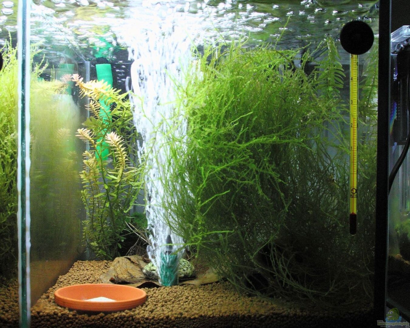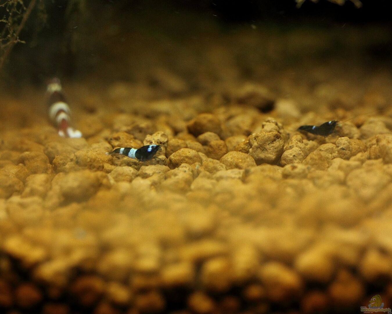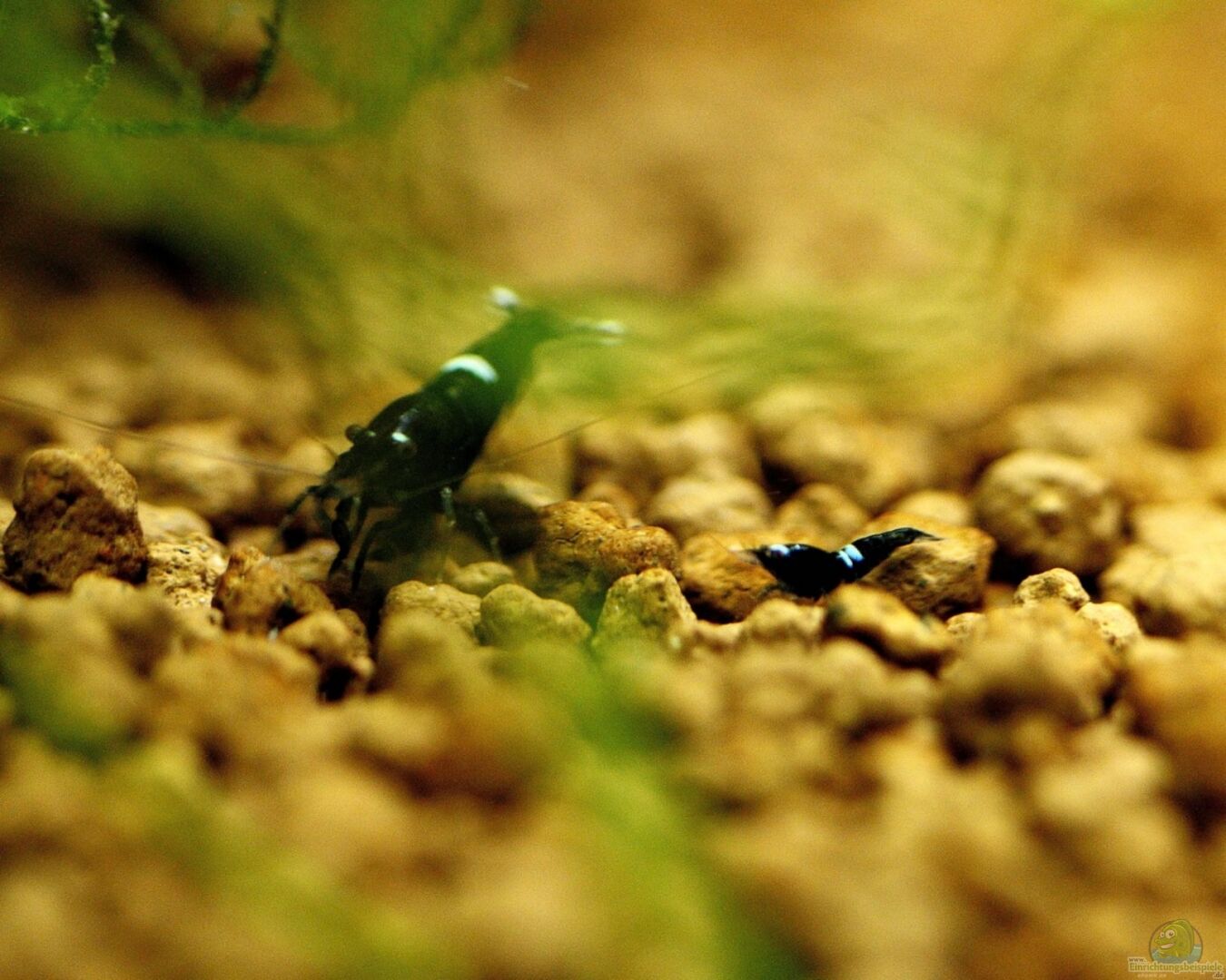 Das Becken mag für manche Augen spärlich oder auch unzureichend bepflanzt wirken, jedoch ist die Einrichtung für meine Züchterambitionen die beste Möglichkeit. Auch die Garnelen fühlen sich bei meiner Art der Pflege äußerst wohl. Zu sehen an den extrem leuchtenden Farben der Tiere und auch zu sehen an der Vermehrungsfreudigkeit.