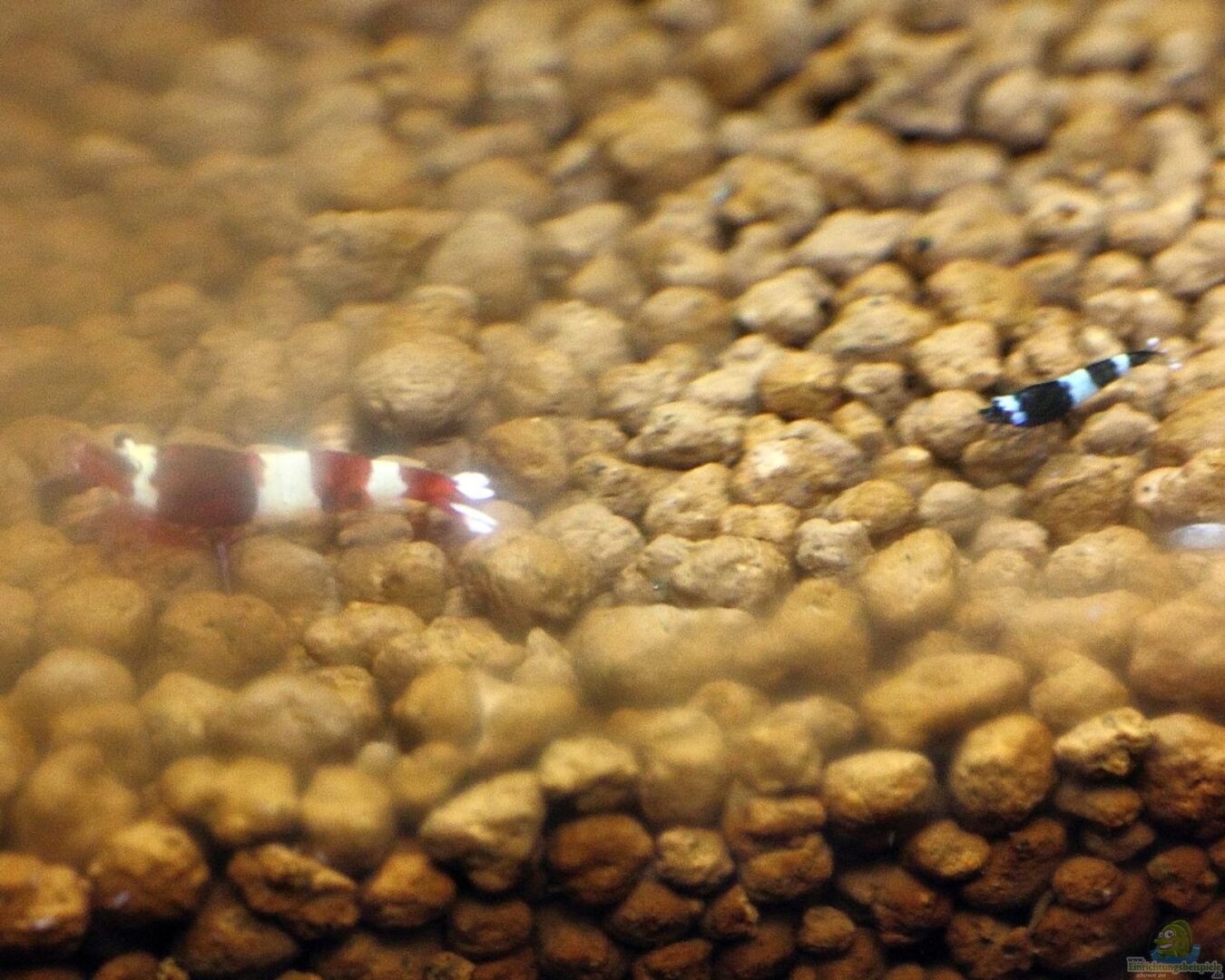 Dieser Bodengrund aus verschiedenen gebrannten Erden senkt die Karbonathärte (KH) und den pHWert dauerhaft. Für die Red Bee-Zucht sollte im Becken eine Karbonathärte (KH) von 0 - 2 und zur Vermeidung von Ammoniak ein pH-Wert von unter 7 eingestellt sein. Bei Taiwan-Bee`s solle der pH-Wert noch tiefer liegen. Ist die gemessene Gesamthärte (GH) bei diesen Werten geringer als 5° dH, werde ich mit Shirakura Liquid Mineral Ca+ diese wieder etwas anheben, da es ansonsten zu Häutungsproblemen kommen kann.