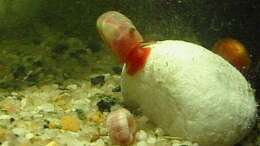 Unten rechts: reinerbige rosa Posthörnchen (Planorbella duryi)