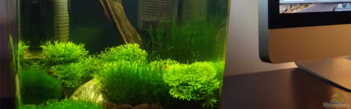 10l-Nanobecken mit HMF (inkl. Nano-Eckfilter-Pumpe ohne Filterbehälter) als Gewächshaus eingerichtet. Hier wächst Riccia fluitans und Javamoos heran um später ein 57l-Becken zu schmücken, welches im Iwagumi-Stil eingerichtet wird. Bis dahin werden aber noch Monate vergehen. Die Garnelen werden am Umzugstag nicht schlecht staunen. Notiz: habe bisher noch nie einen HMF eingesetzt und gilt daher als Versuchsobjekt für das spätere 57l-Becken.