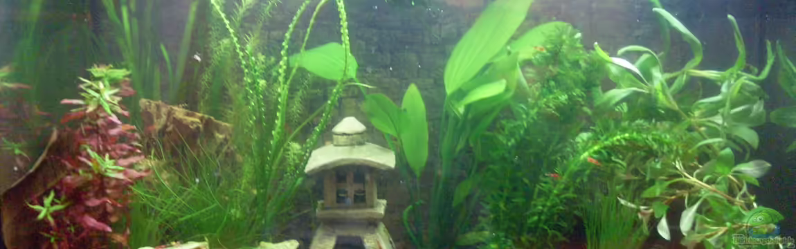 Komplett-Set Tetra Aqua Art, habe den mitgelieferten Innenfilter ausgetauscht gegen einen Besseren, als Rückwand habe ich Fotokarton mit einer Steinmauer hinter das Aquarium geklebt.