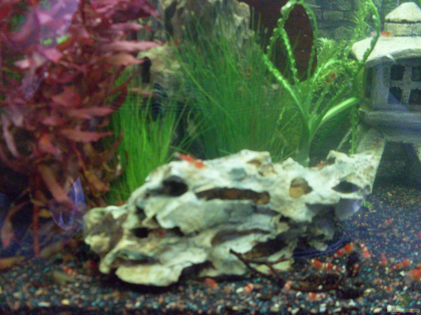 Habe vor 4 Tagen morgens plötzlich viele tote Garnelen im Becken gefunden :*-( und wei?? nicht warum. Habe sofort die Wasserwerte überprüft weil ich einen NO2-Peak im Verdacht hatte, aber die Wasserwerte waren in Ordnung. Kein NO2 und NO3 nachweisbar. die überlebenden Garnelen hielten sich nahe der Oberfläche auf und hatten scheinbar nicht genug Sauerstoff. Sah nach einer Vergiftung aus. Habe daraufhin einen Gro??teil Wasser gewechselt und den künstlichen Baum rausgenommen. Der roch komisch faulig und ich habe ihn als ??beltäter im Verdacht. Werde die leer gewordene Ecke neu dekorieren und bepflanzen und ausserdem einen Ausströmer für mehr Wasserbewegung anbringen. Hoffentlich vermehren sich die verbliebenen Garnelis dann bald wieder, leider hat keines der eiertragenden Weibchen überlebt :-( Aktuelle Fotos folgen sobald die leere Ecke wieder gefüllt ist. Im Moment liegen dort nur 2 Mooskugeln und etwas Javamoos. Ich hoffe, dass jetzt alles gut geht und nicht wieder so eine Katastrophe eintritt. Es sah alles so gut aus bisher, bin ein bischen schockiert darüber was passiert ist und sehr traurig über den Verlust meiner kleinen Krabbler.