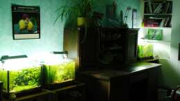 Ich wollte einfach mal einen mal einen Hamburger-Mattenfilter basteln. Da bot sich das kl. Becken, was ich noch rum stehen hatte gerade zu an. So entstand (nebenbei) ein kleinres Garnelenbecken.