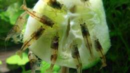 Die Hummelgarnelen vermehren sich nach anfänglichen Schwierigkeiten jetzt prächtig. Mindestens geschätzte 70 Tiere bevölkert zurzeit das Becken.