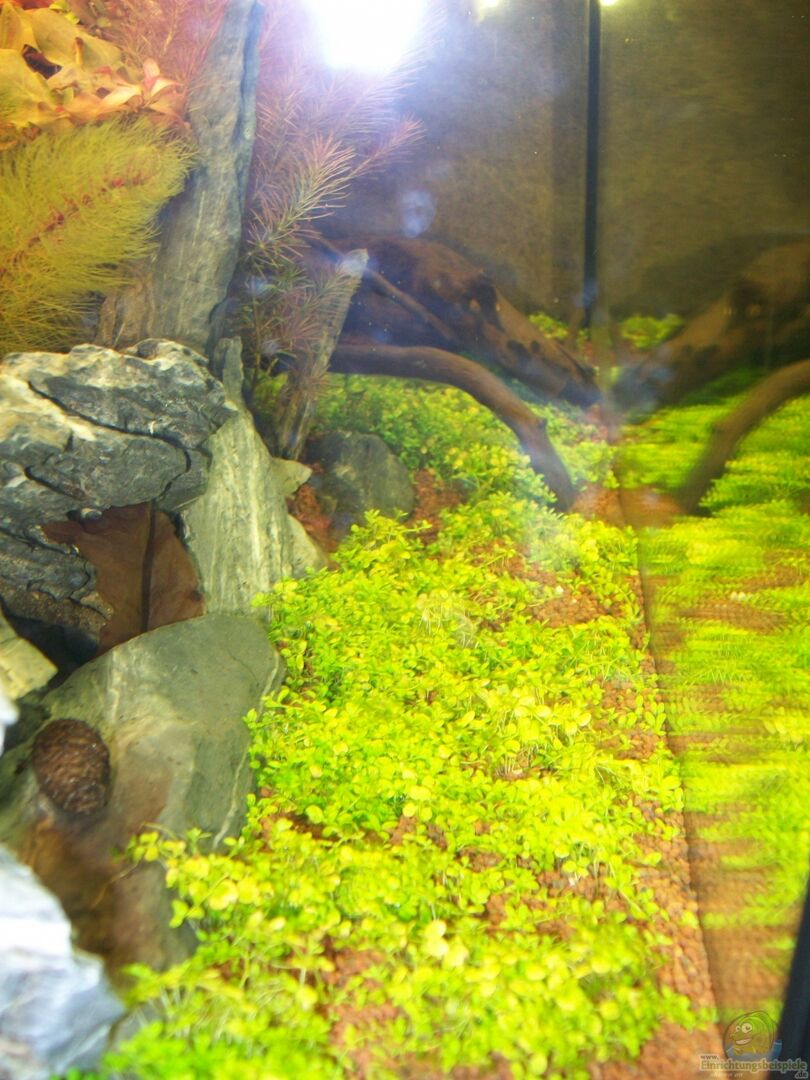 Wenn deine Hemianthus callitrichoides erstmal zu einem schönen Teppich zusammengewachsen ist gibt das sicher einen super Kontrast zu den Rottönen im Hintergrund. Leider gehen im Rot die Red Rili etwas unter. Das war bei mir der Grund weshalb ich komplett auf Rot verzichtet habe.