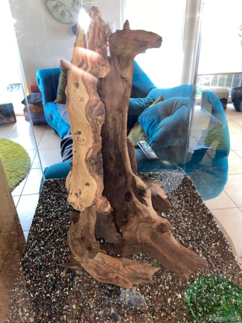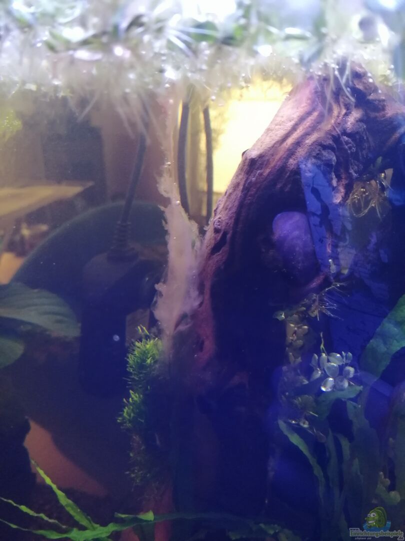 Nach genau 2 Tagen bildete sich ein Bakterienrasen auf einer der 3 Wurzeln. Interessanterweise nur auf der auffällig hellen Seite des Holzes. Genau abgegrenzt zum dunklen Teil der selben Wurzel. Mal schauen wie lange sie sich halten.