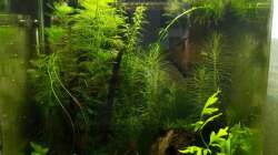 Myriophyllum mattogrossense und Pogostemon erectus sind im Hintergrund bis in den Mittelgrund angeordnet, Pogostemon erecturs rechts, Myriophyllum mattogrossense links. Dazwischen sind die drei Stengel Myriophyllum tuberculatum angeordnet, um etwas Kontrast zu geben.