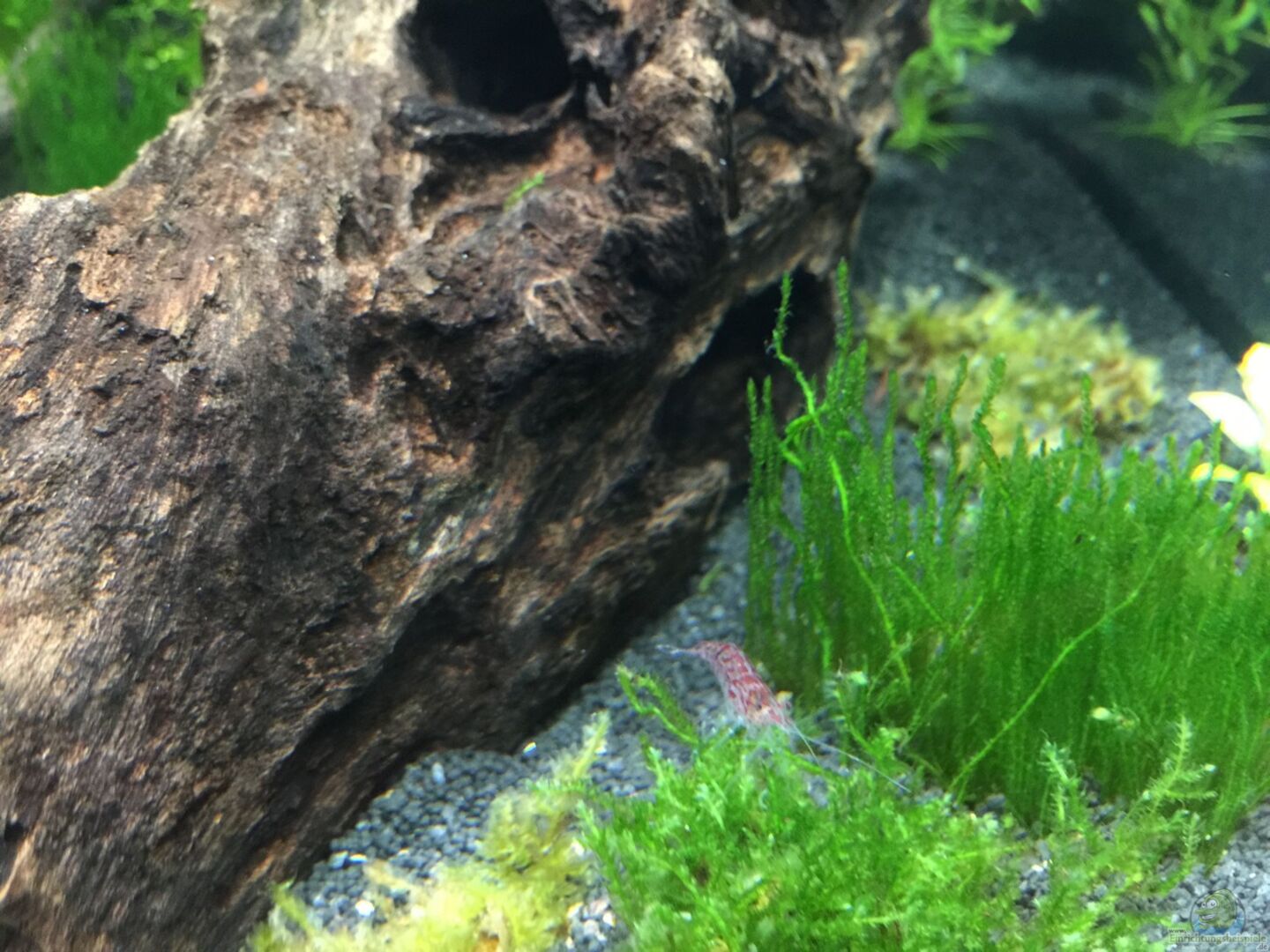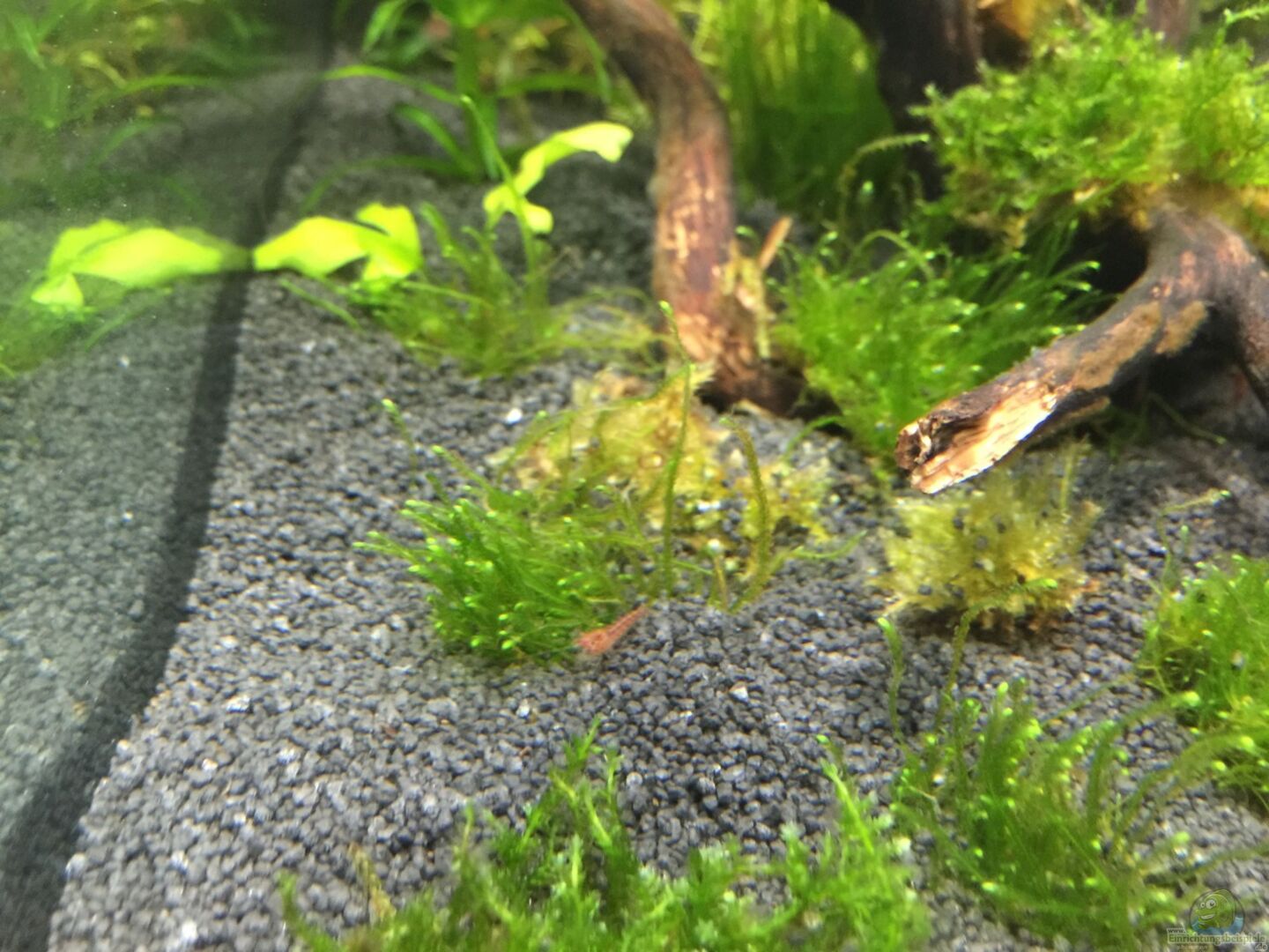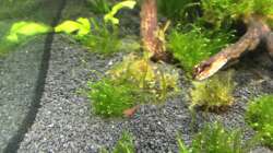 Alle 1-2 Tage gibt es sehr wenige Körner CrustaGran Futter, das sehr gut angenommen wird. Hauptsächlich versorgen sich die Garnelen und Schnecken selbst mit allem was sie finden können.