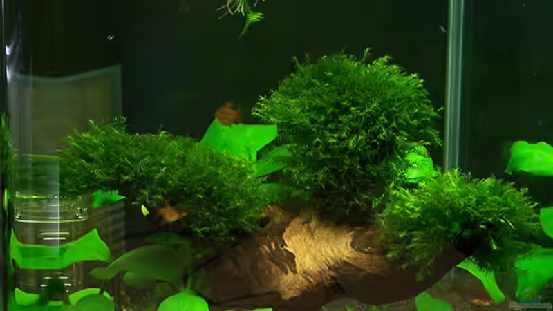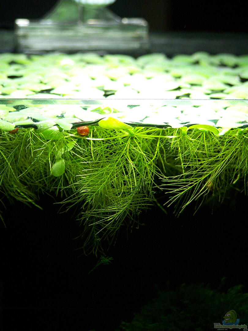 An dem Design hat sich soweit was verändert dass das Gras und die Rotala rausgeflogen sind und nun die Teichlinse als Schwimmpflanze das ganze AQ etwas gemütlicher macht.Das Moos wurde vor 2 Wochen stark runtergeschnitten.