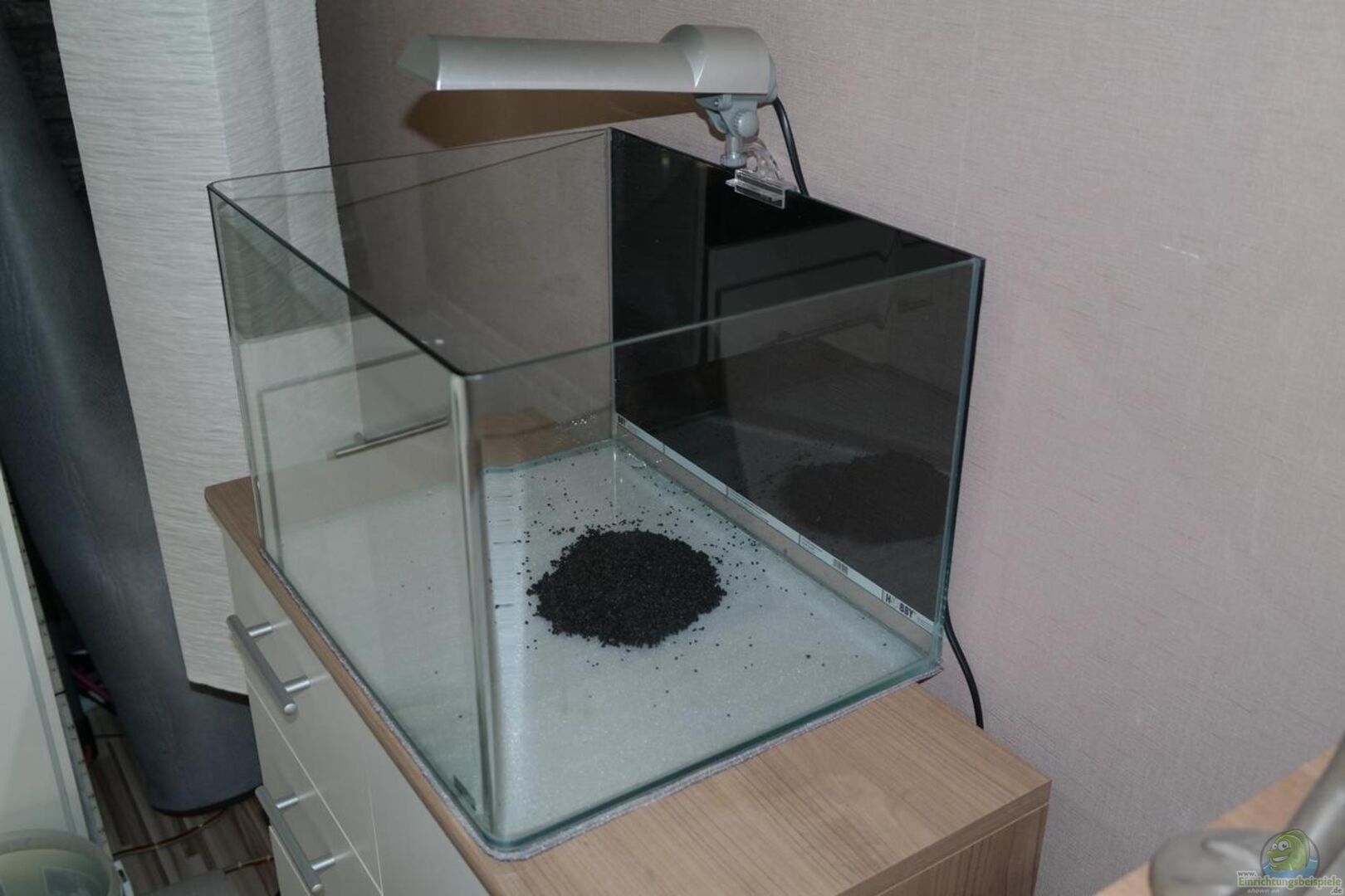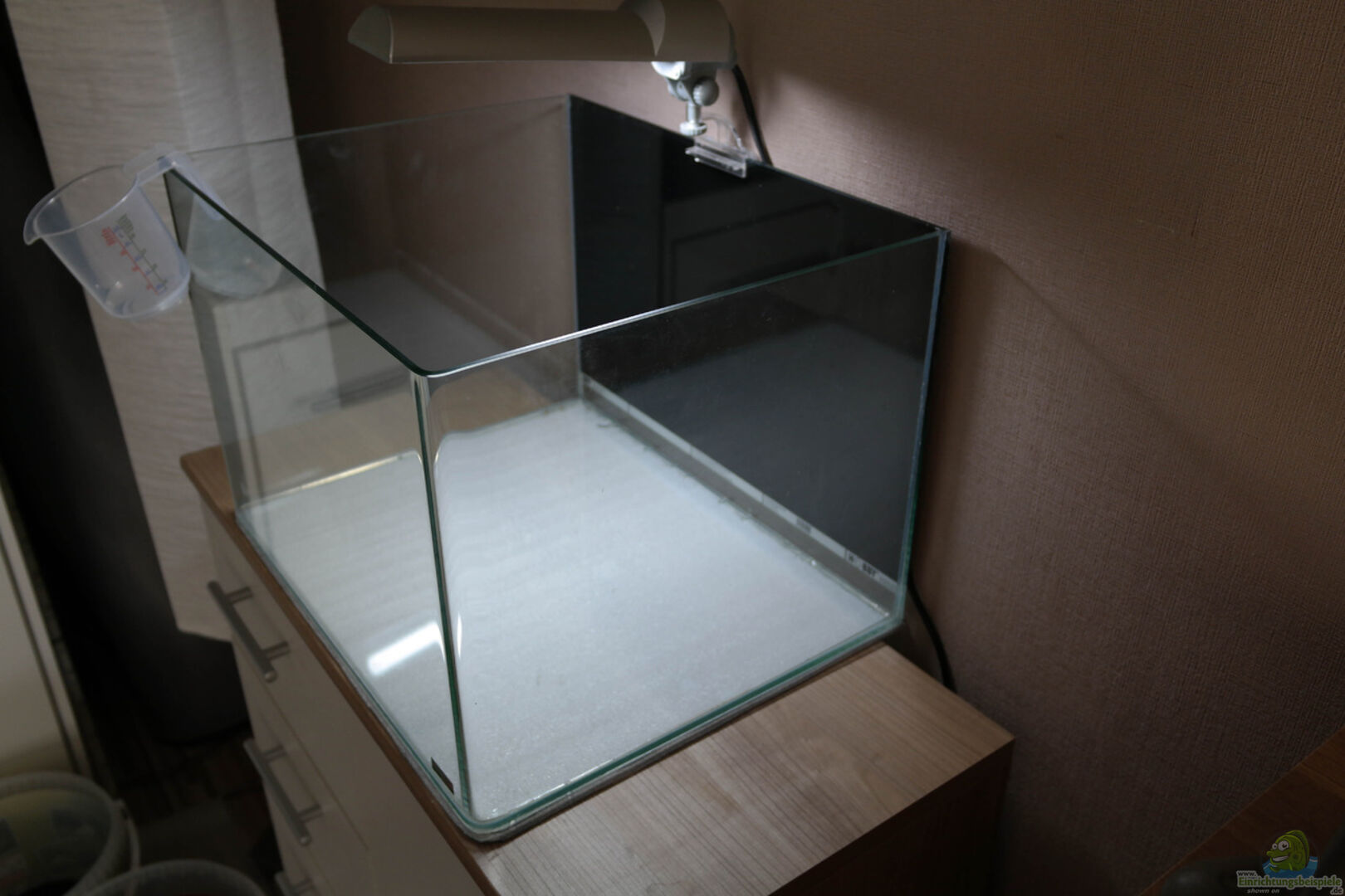 Ich sah den Dennerle Scapers Tank (50 Liter) und verliebte mich auf den ersten Blick. Eigentlich ist das Haus mit etlichen Becken von 720 Liter bis 20 Liter schon besetzt und kein freier Schrank zur Verfügung. Wie das mit uns Frauen aber so ist, schaute ich meinen Mann ganz ganz lieb und flehend an und er grummelte, dass ich es halt mitnehmen soll und er irgendwie einen Schrank zusammen bastelt. Mein Mann ist zwar mittlerweile beruflich anderweitig tätig, aber immerhin bleibt er gelernter Schreiner, was ein Glück ;)