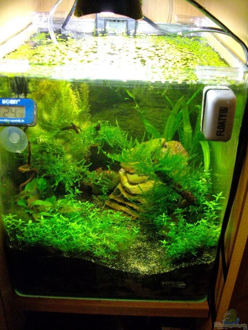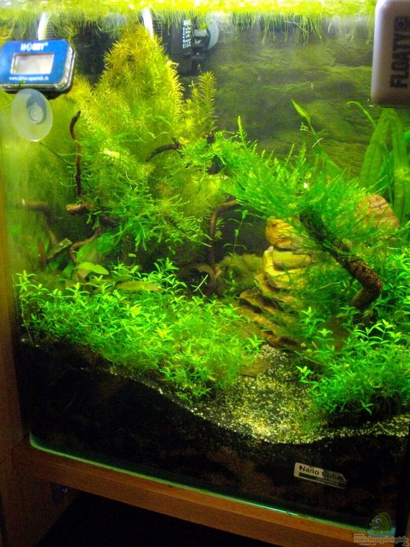 Neuen Nano-Cube von Dennerle gekauft und wieder genauso eingerichtet. Das Nixkraut ist jedenfalls futsch. Habe dafür eine sehr feinfiedrige Wasserpestart aus meinem 54er-Amazonasbecken eingepflanzt (nur ein paar Stecklinge)