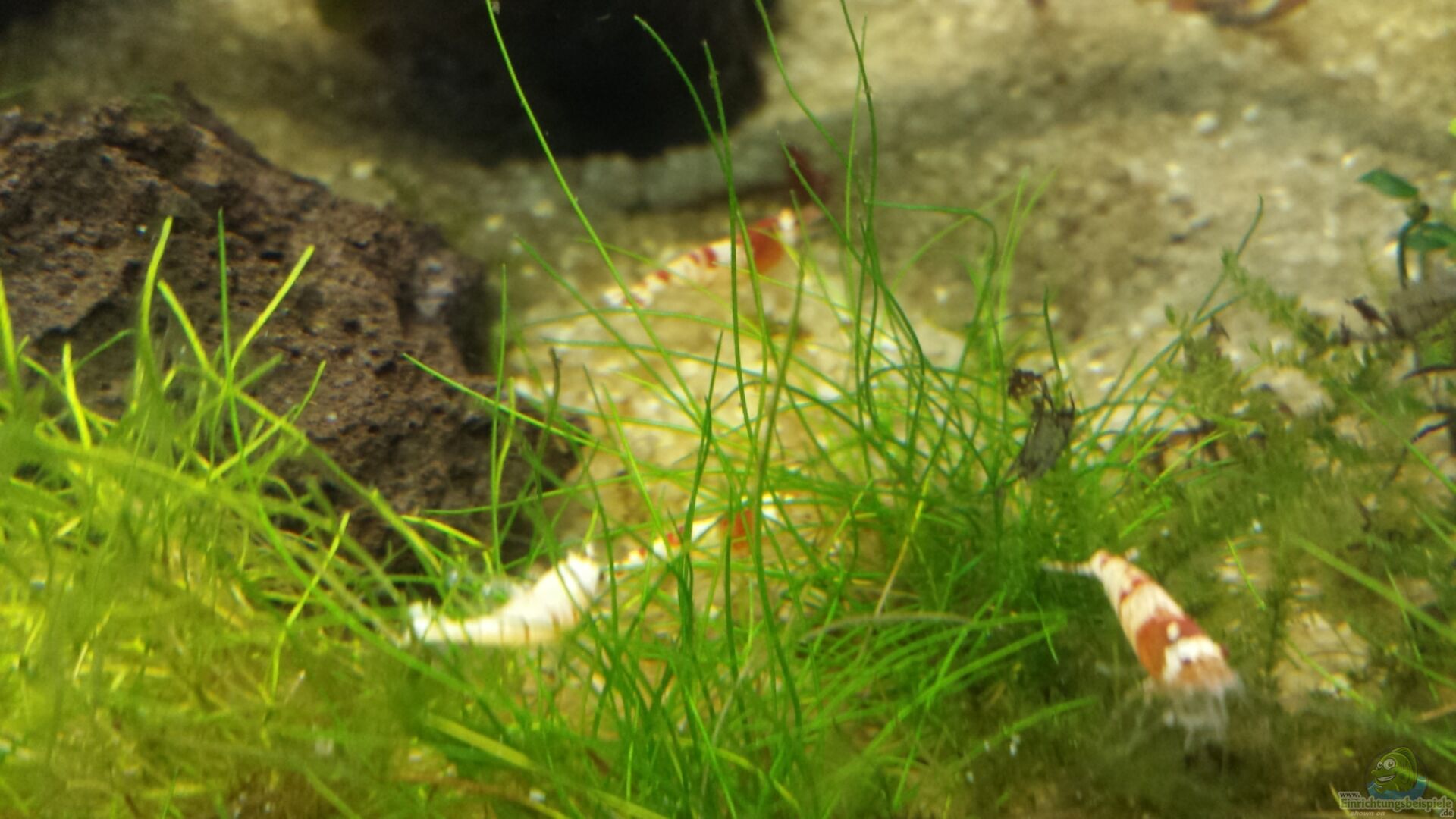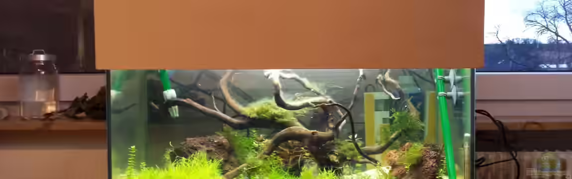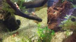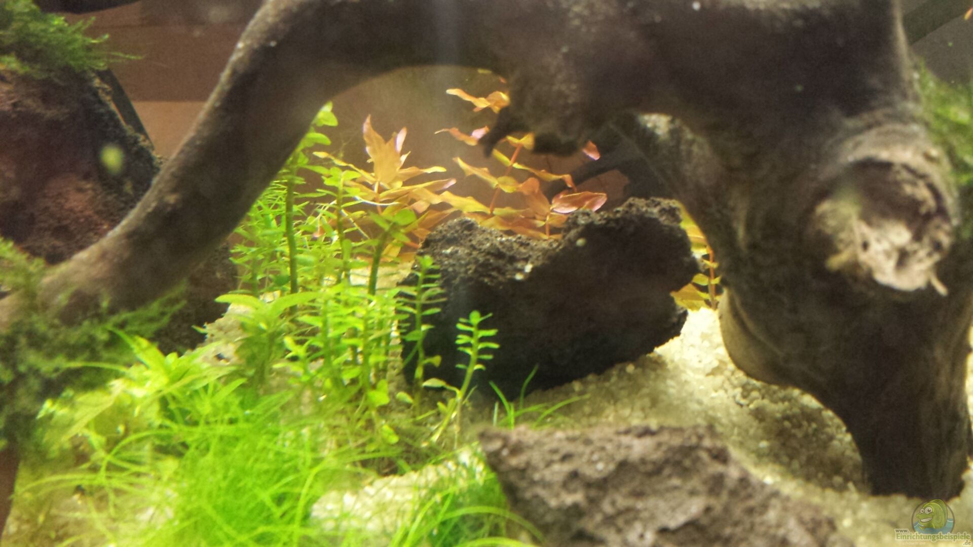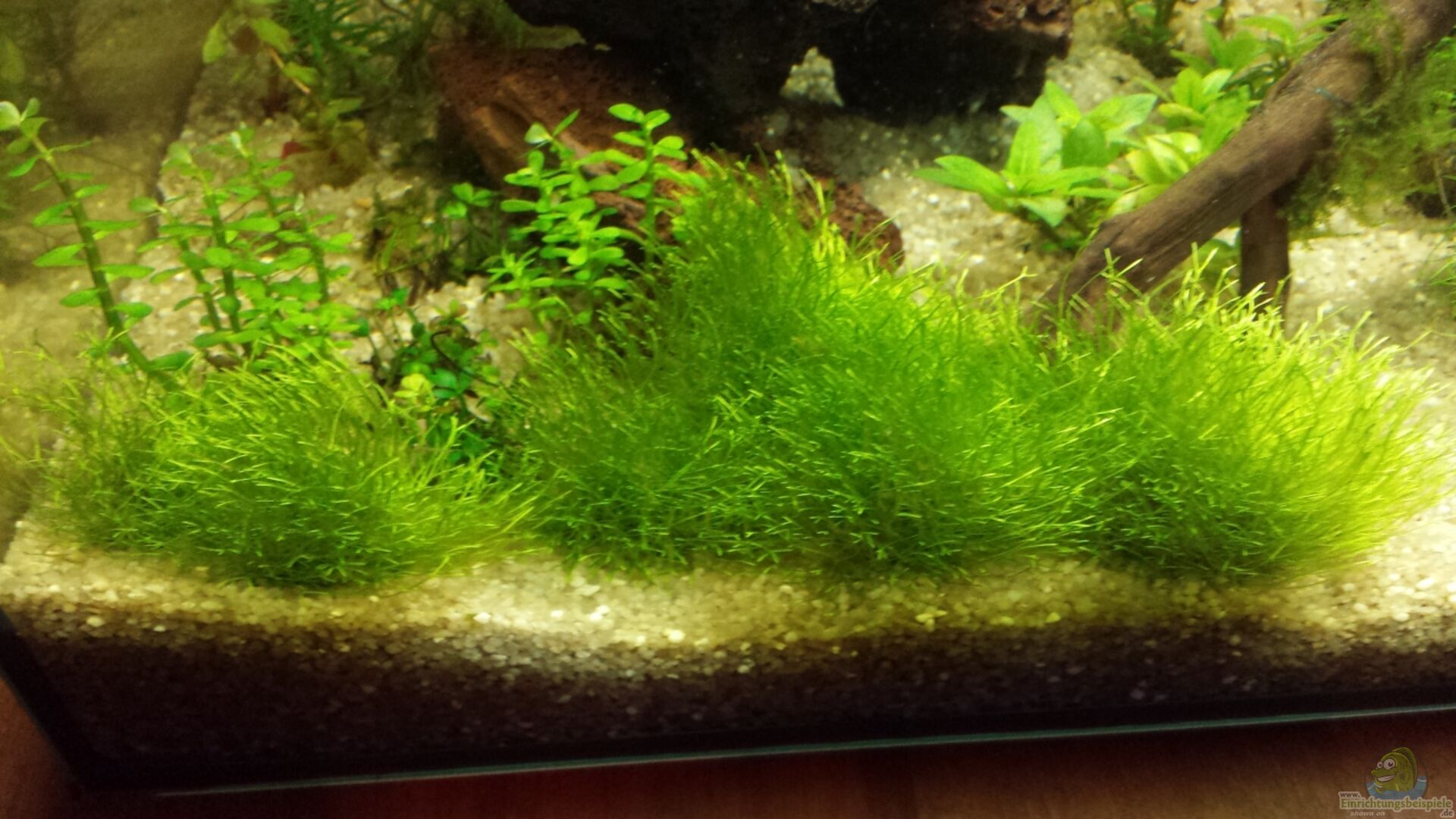 Nachdem sich Fadenalgen gebildet haben, die Beleuchtungsdauer auf 10, 5 Stunden reduziert und die Eheim Strömungspumpe Compact aus dem Aquarium genommen, um die Strömung zu reduzieren.