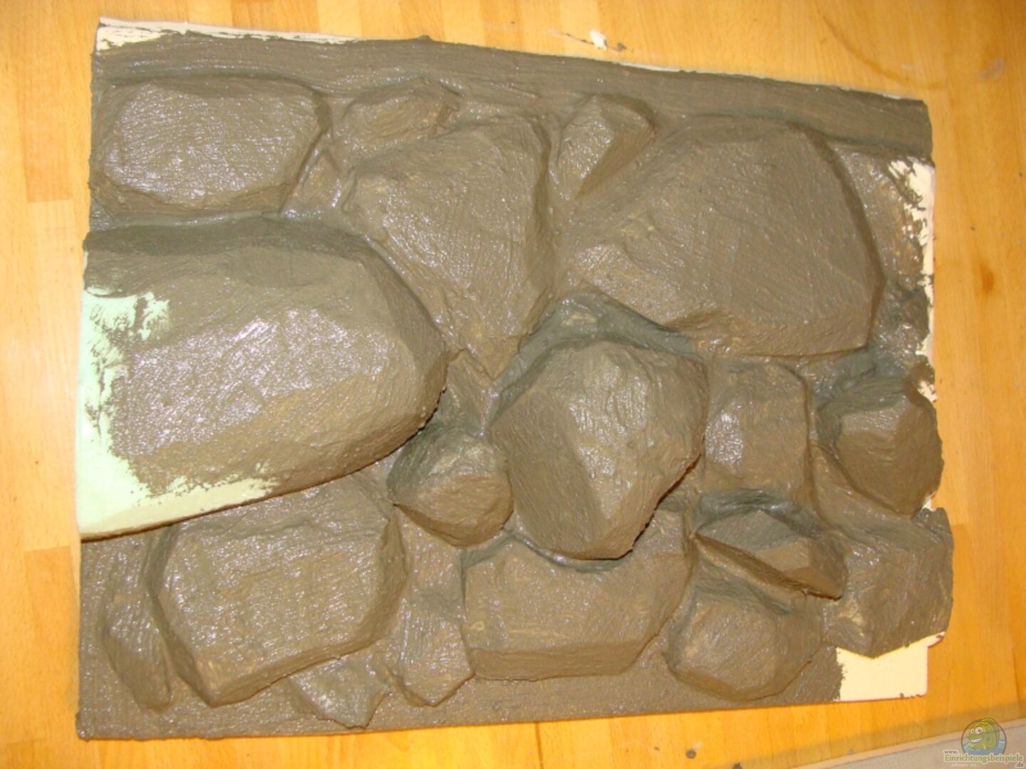 Selbsgebaute Rückwand und Felsmodule welche innen hohl und somit als Höhle nutzbar sind