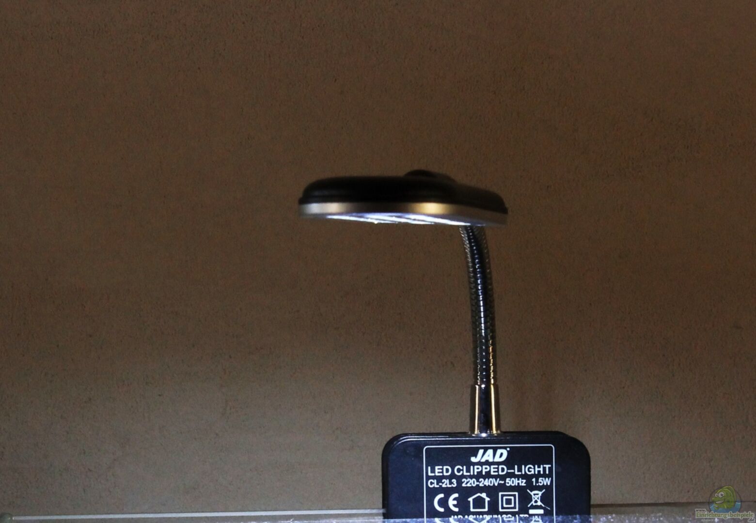 die Lampe ist am Beckenrand befestigt und hat einen flexiblen Schwanenhals