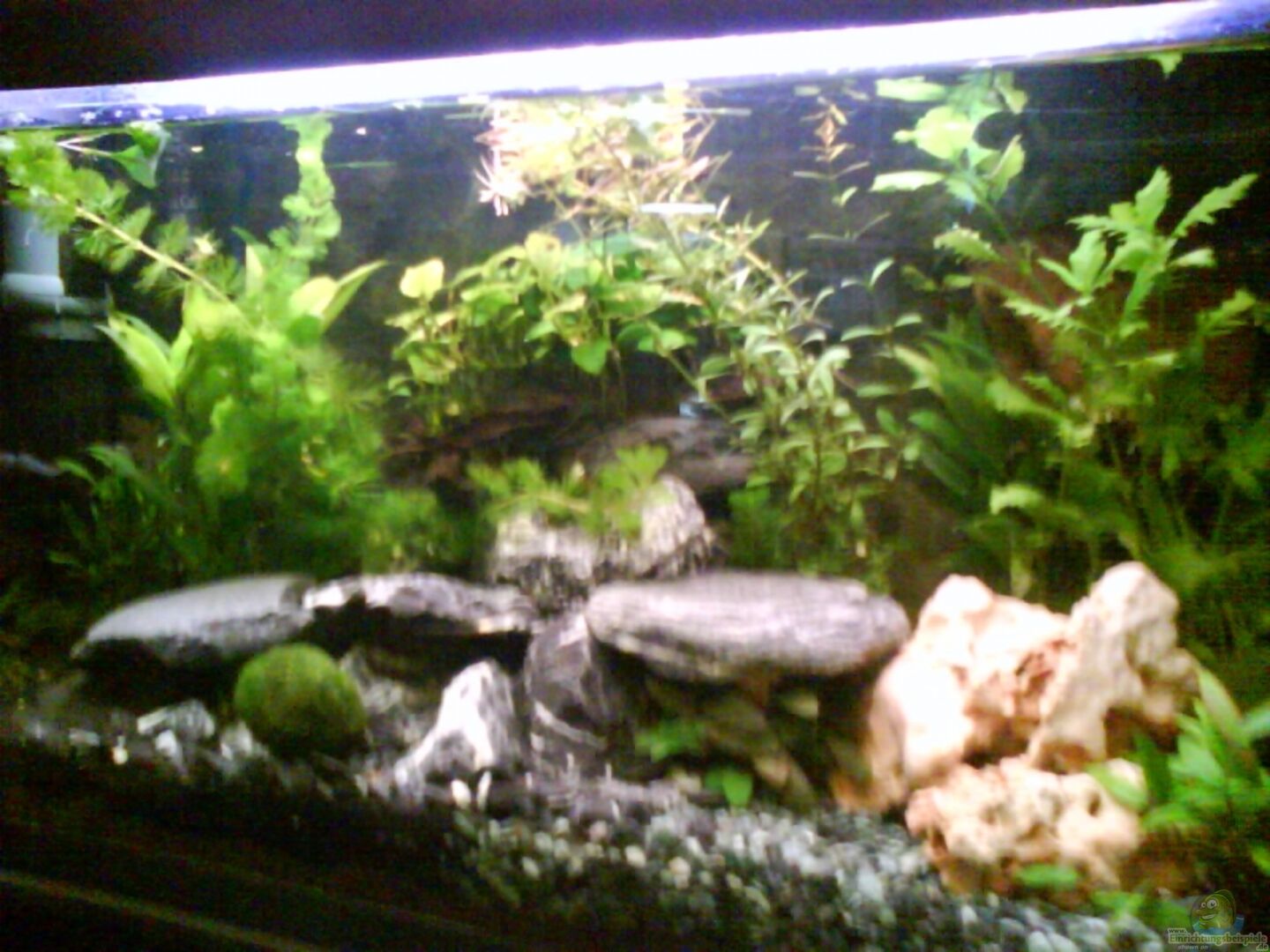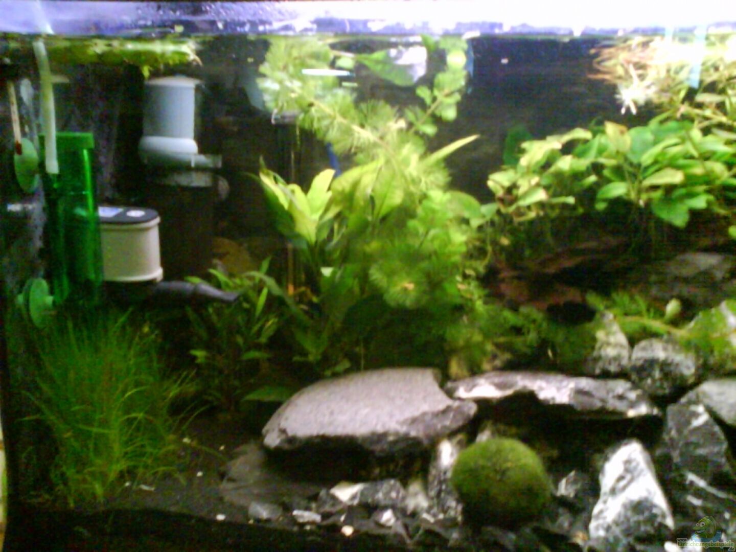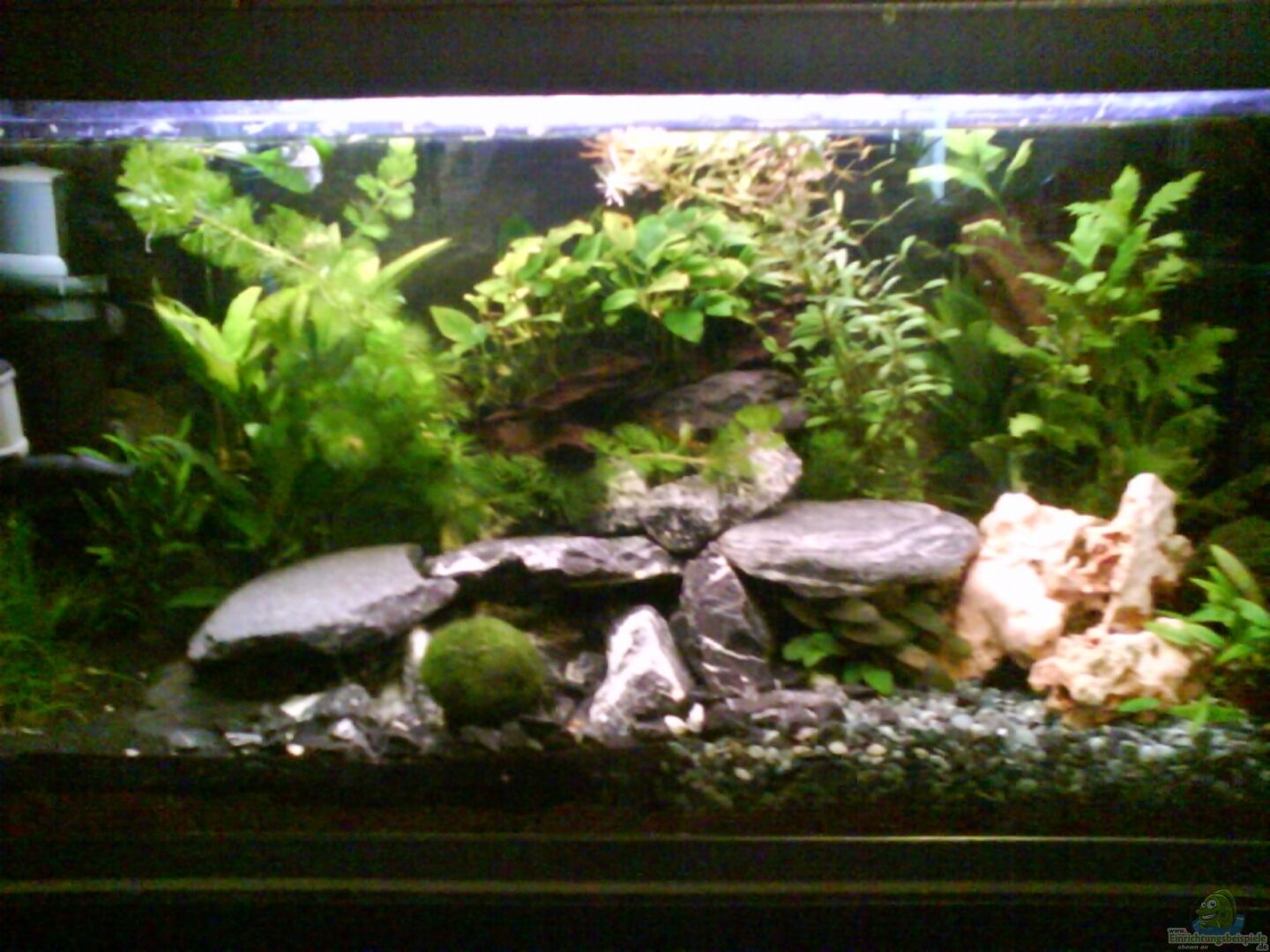 Bei Zwerggarnelen weiss ich, das diese gerne Moose und solche sachen haben, allerdings mögen die Radargarnelen meines Wissens sehr gerne viele Steine da sie sich gerne dazwischen verstecken und auf ihnen sehr gut Fächern können. Dashalb habe ich das Becken auch mit soviel Gestein ausgerüstet.