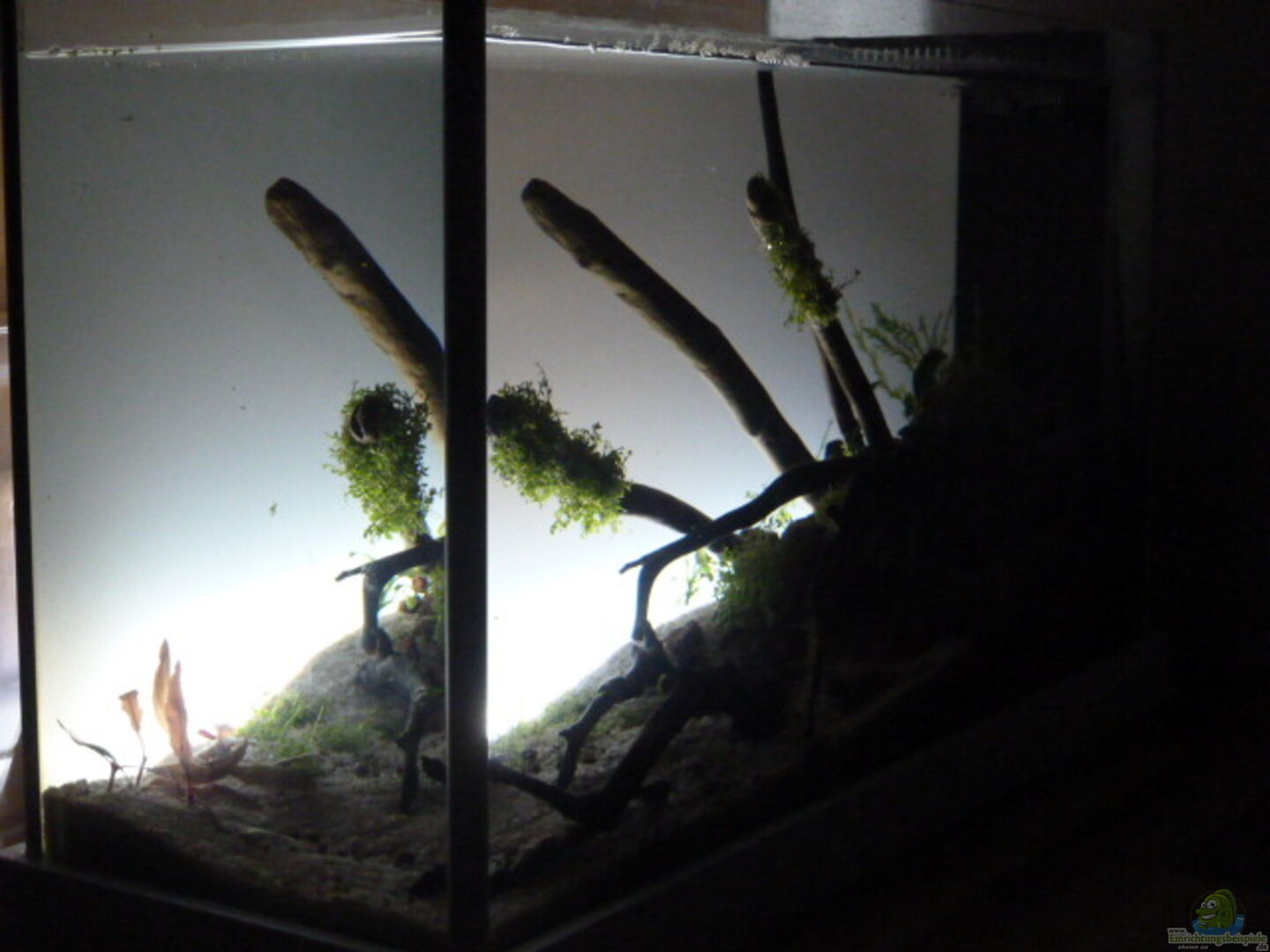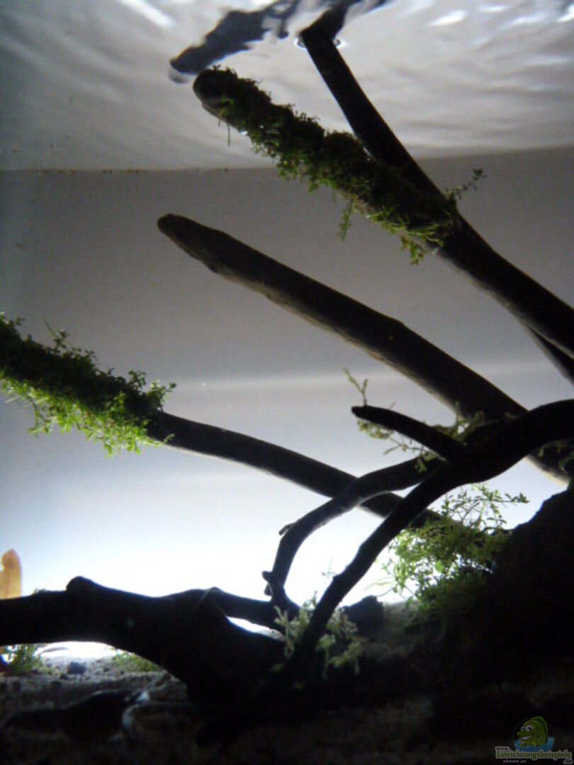 Der Filterzulauf wurde mittels einer Filtermatte etwas vom Substrat abgetrennt, damit die Pumpe trotzdem mit Wasser versorgt wird.