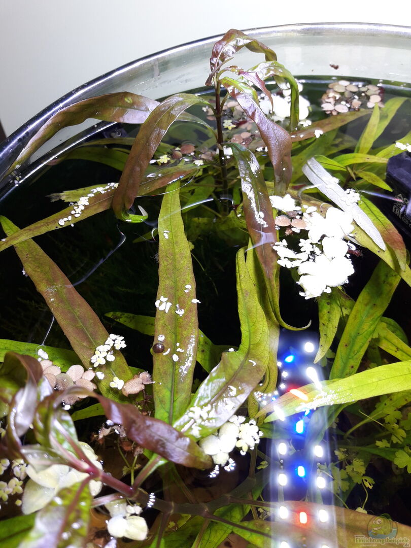 Au??erdem einige Schwimmpflanzen: Salvinia Auriculata( Büschelfarn) Wasserlinsen eingeschleppt aber glücklicherweise nicht so vermehrungsfreudig und einige kleine Muschelblumen.