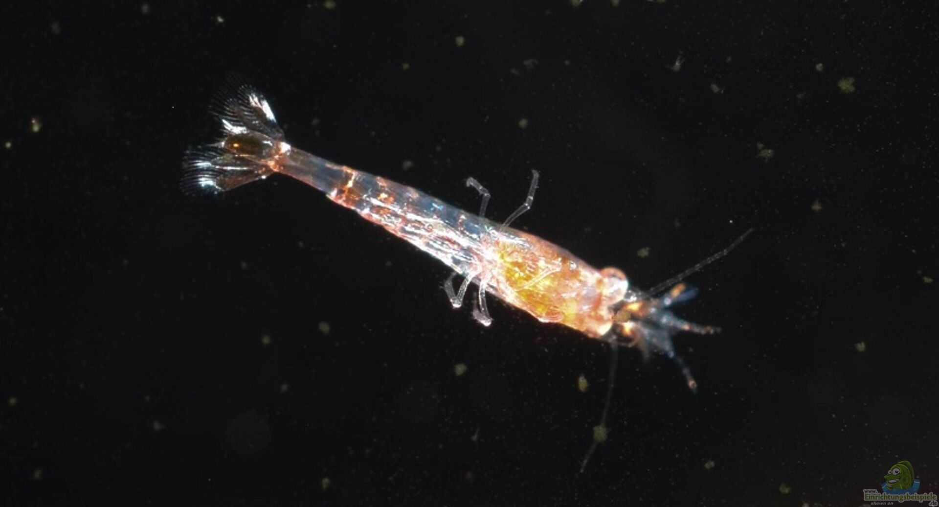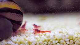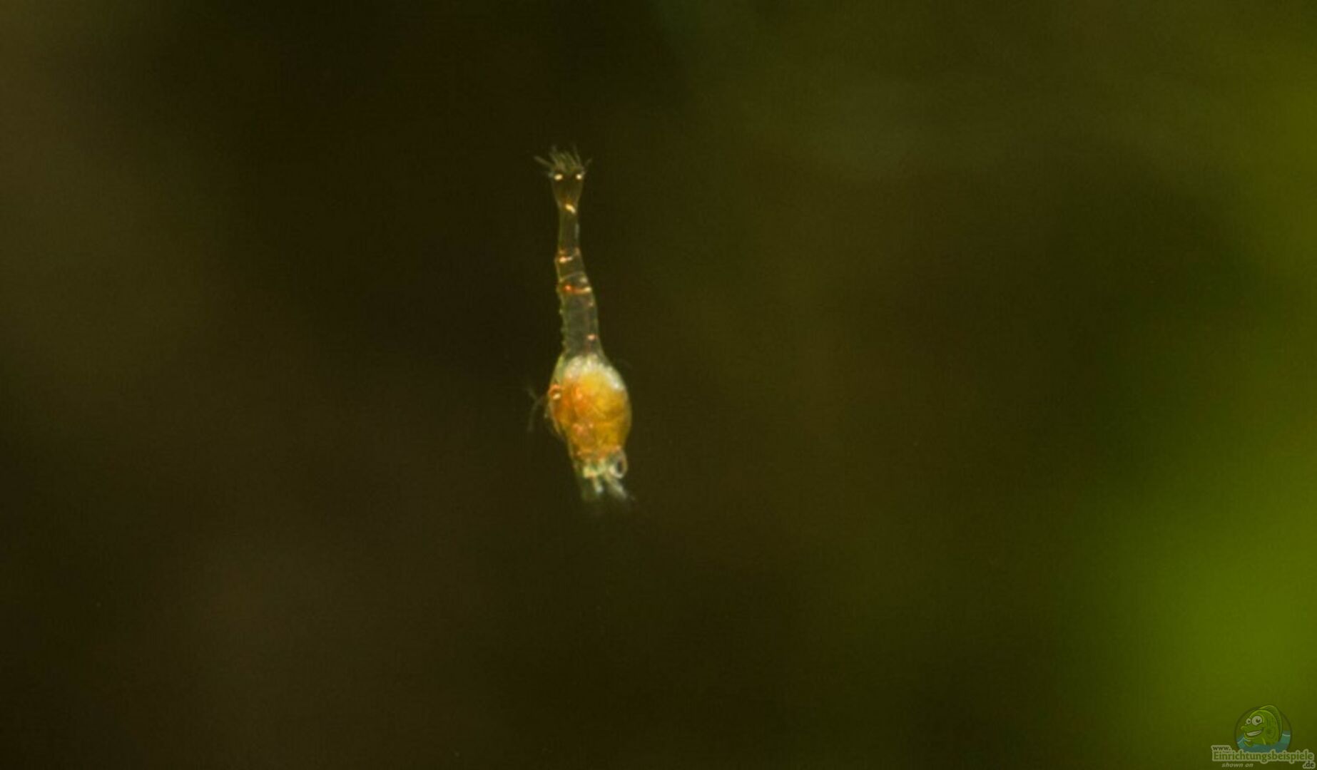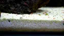 Foto von einer Larve (es sind insgesamt ca. 10) und Fotos vom Leben der Garnelen unter Besatz eingestellt.