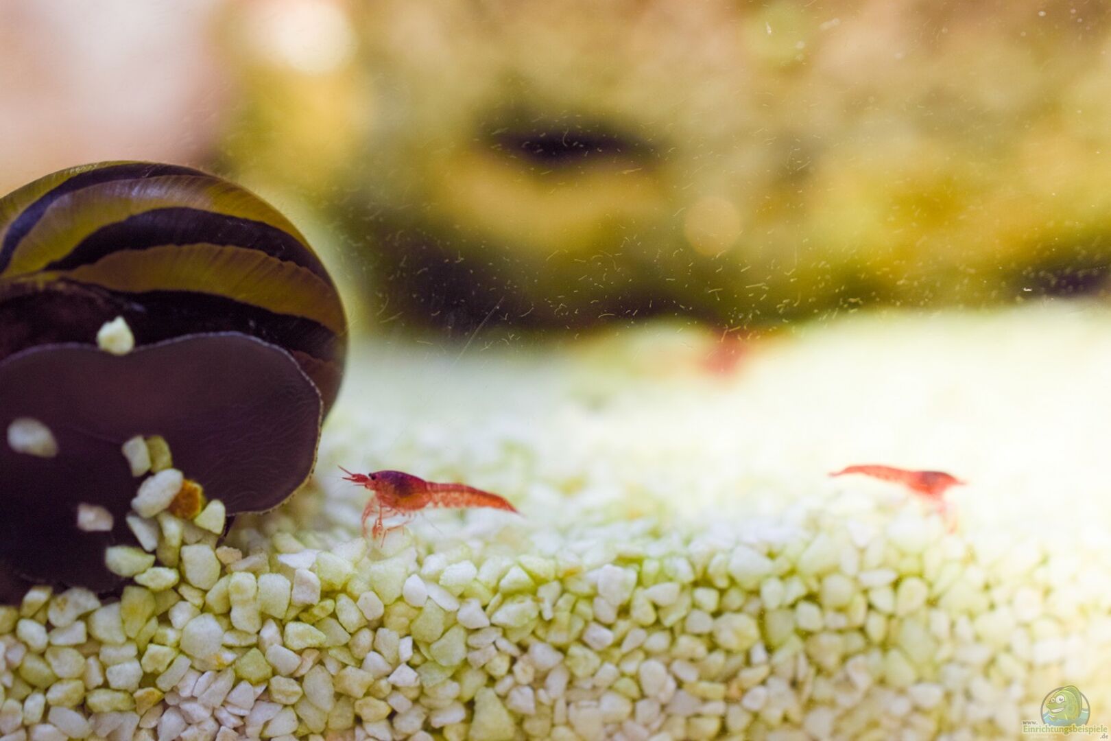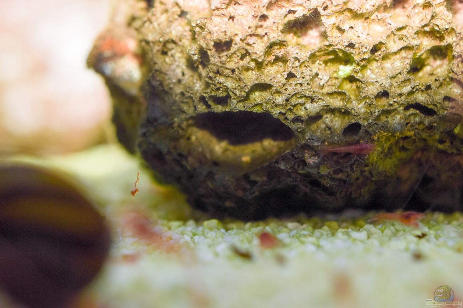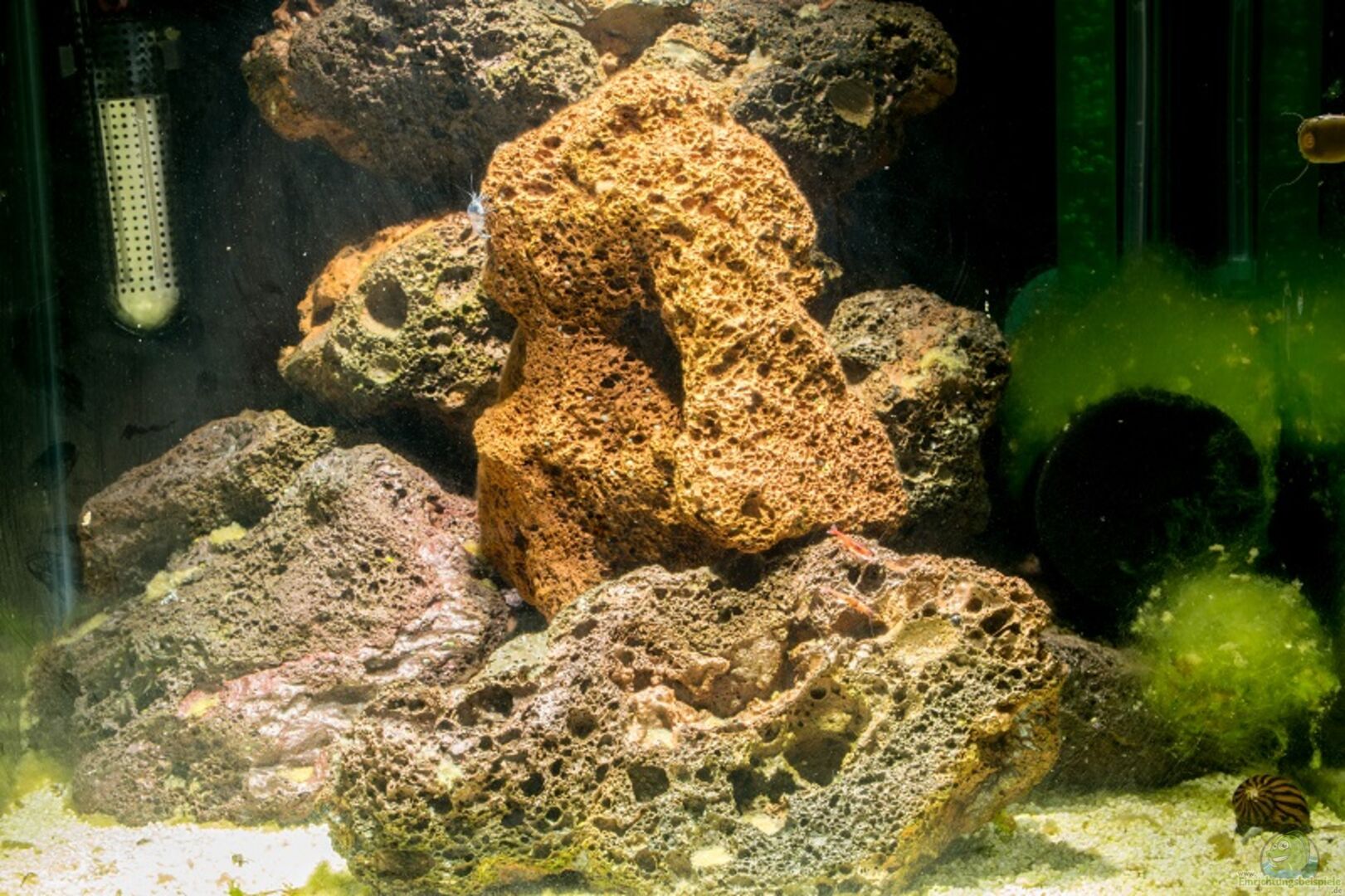 Video "Gewusel bei den Halocaridina rubra" eingefügt. Ich habe noch nie ein Becken gehabt, was so absolut Problemlos läuft. Die Garnelen vermehren sich prächtig und die Rennschnecken fühlen sich "Schneckewohl" und wachsen ohne Gehäuseschaden. Auch die aus dem Süsswasser gerettete Geweihschnecke schneckt, trotz gro??em Gehäuseschaden mit den anderen um die Wette.
