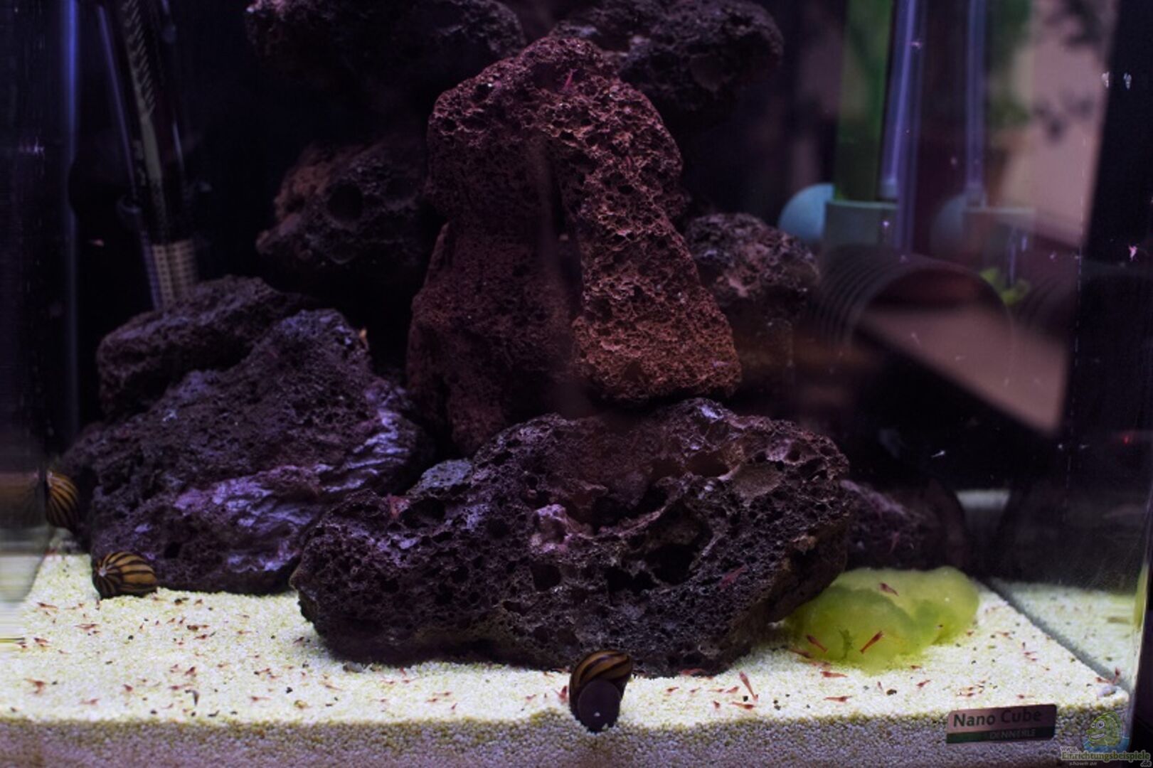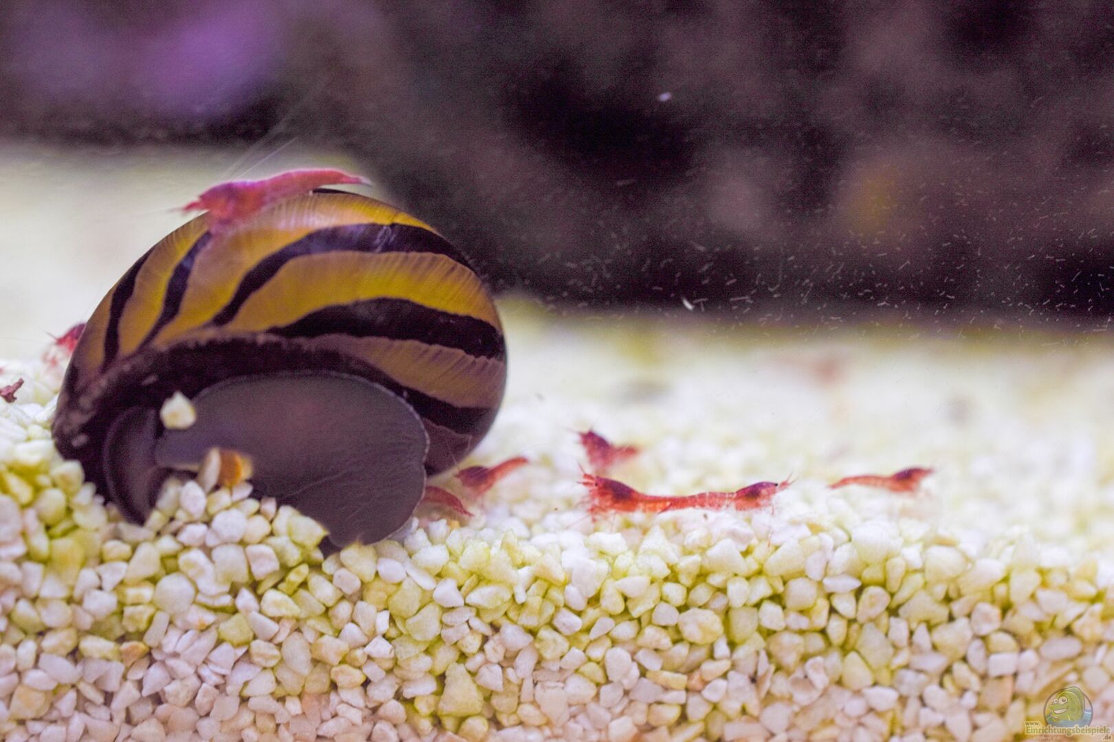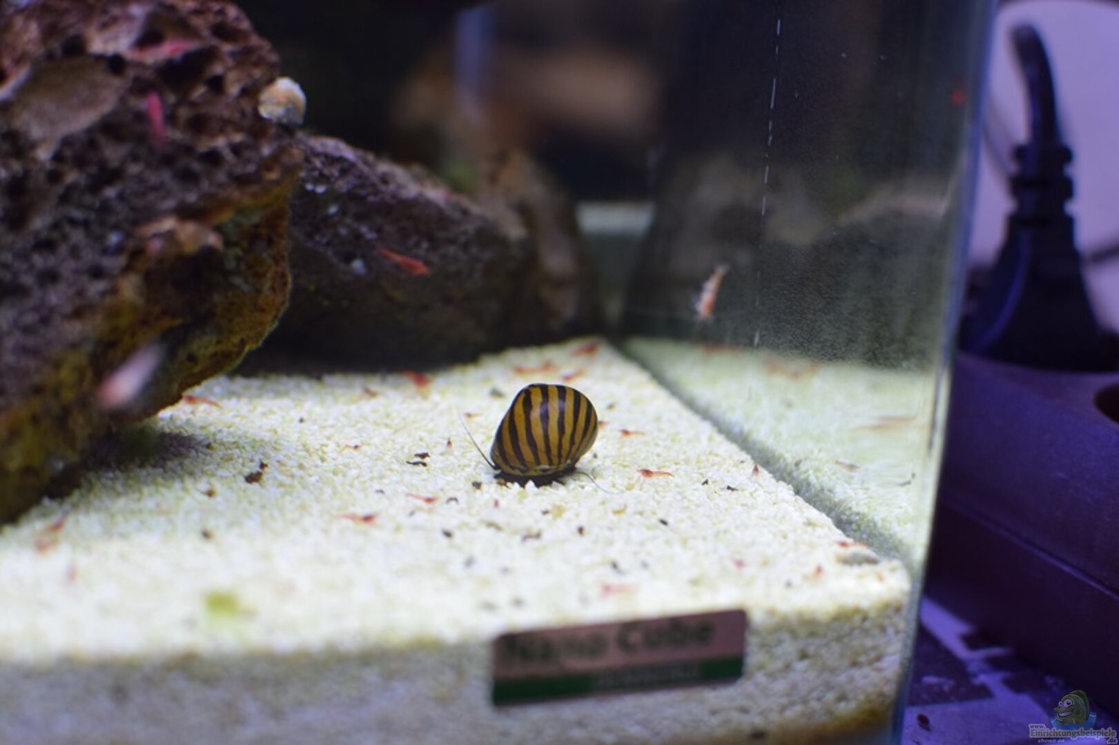 Video "Gewusel bei den Halocaridina rubra" eingefügt. Ich habe noch nie ein Becken gehabt, was so absolut Problemlos läuft. Die Garnelen vermehren sich prächtig und die Rennschnecken fühlen sich "Schneckewohl" und wachsen ohne Gehäuseschaden. Auch die aus dem Süsswasser gerettete Geweihschnecke schneckt, trotz gro??em Gehäuseschaden mit den anderen um die Wette.