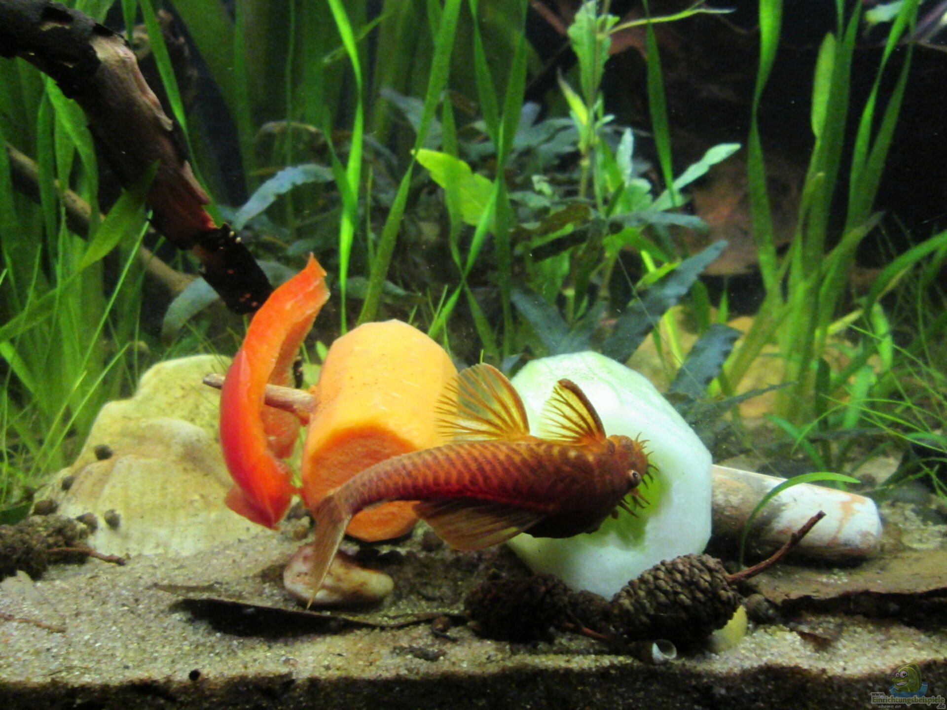Um speziell die Ancistrus und L-134 zu fordern und den gemeinsamen Spieltrieb von Mensch und Tier zu fördern lasse ich die Haken auch gerne in der Beckenmitte baumeln.