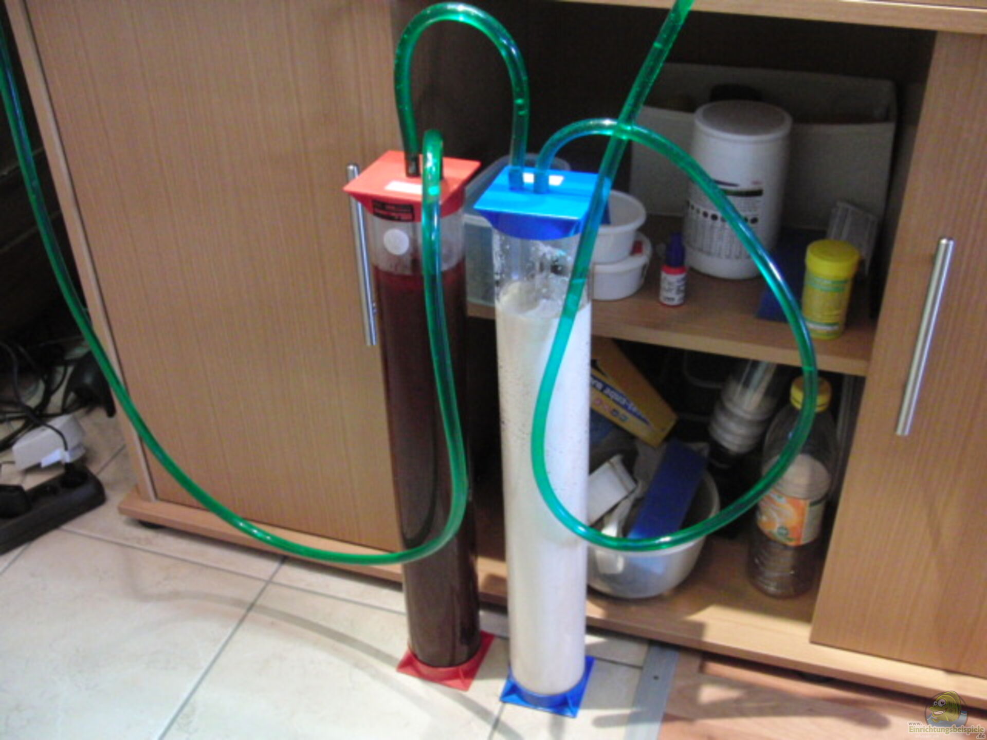 Dabei handelt es sich um Kationischen und Anionisches AustauscherHarz das sich in getrennten Behältern befindet....meist durchsichtige Plexiglassäulen , im AQ Bereich meis um 3liter Volumen.
