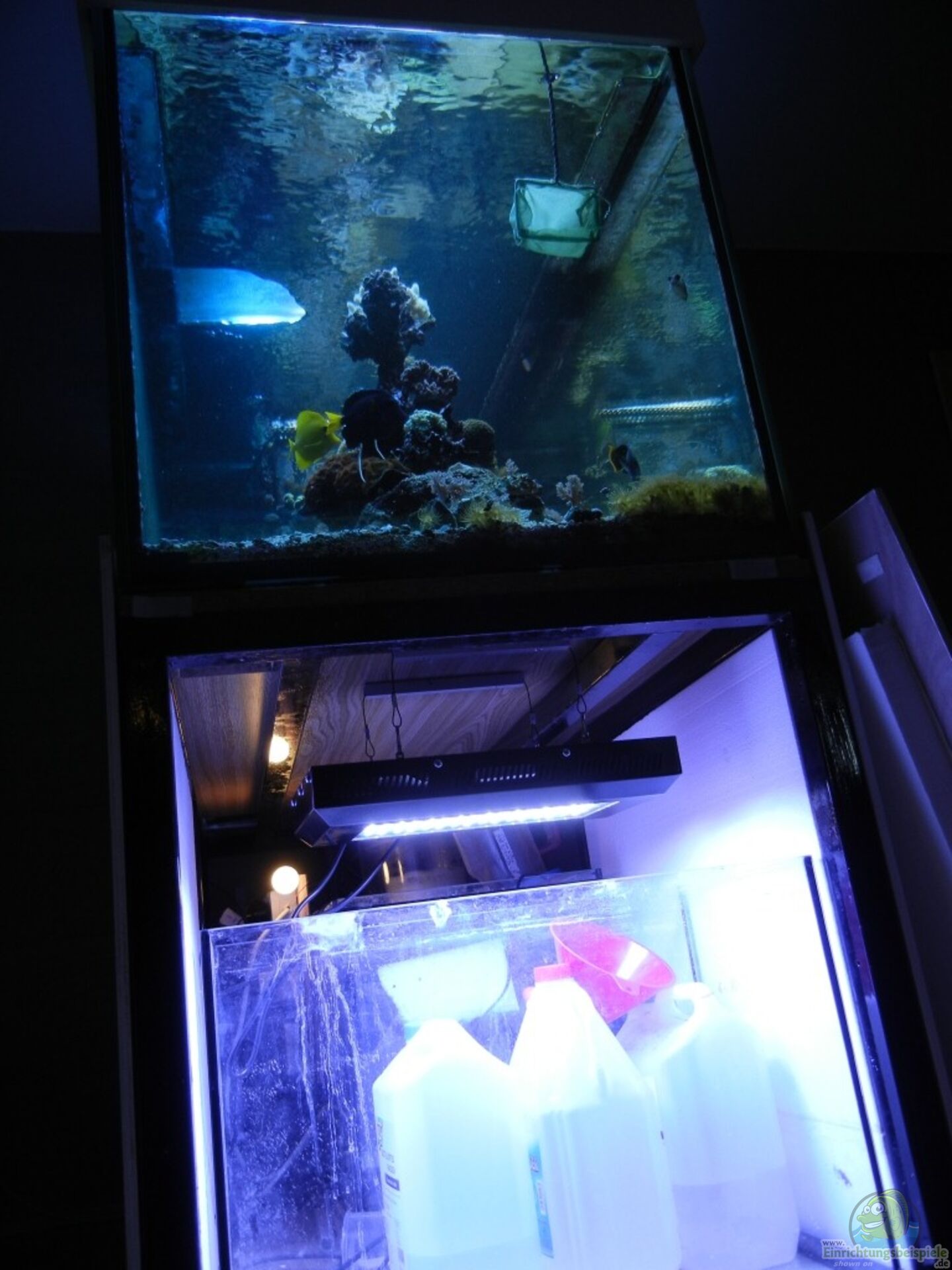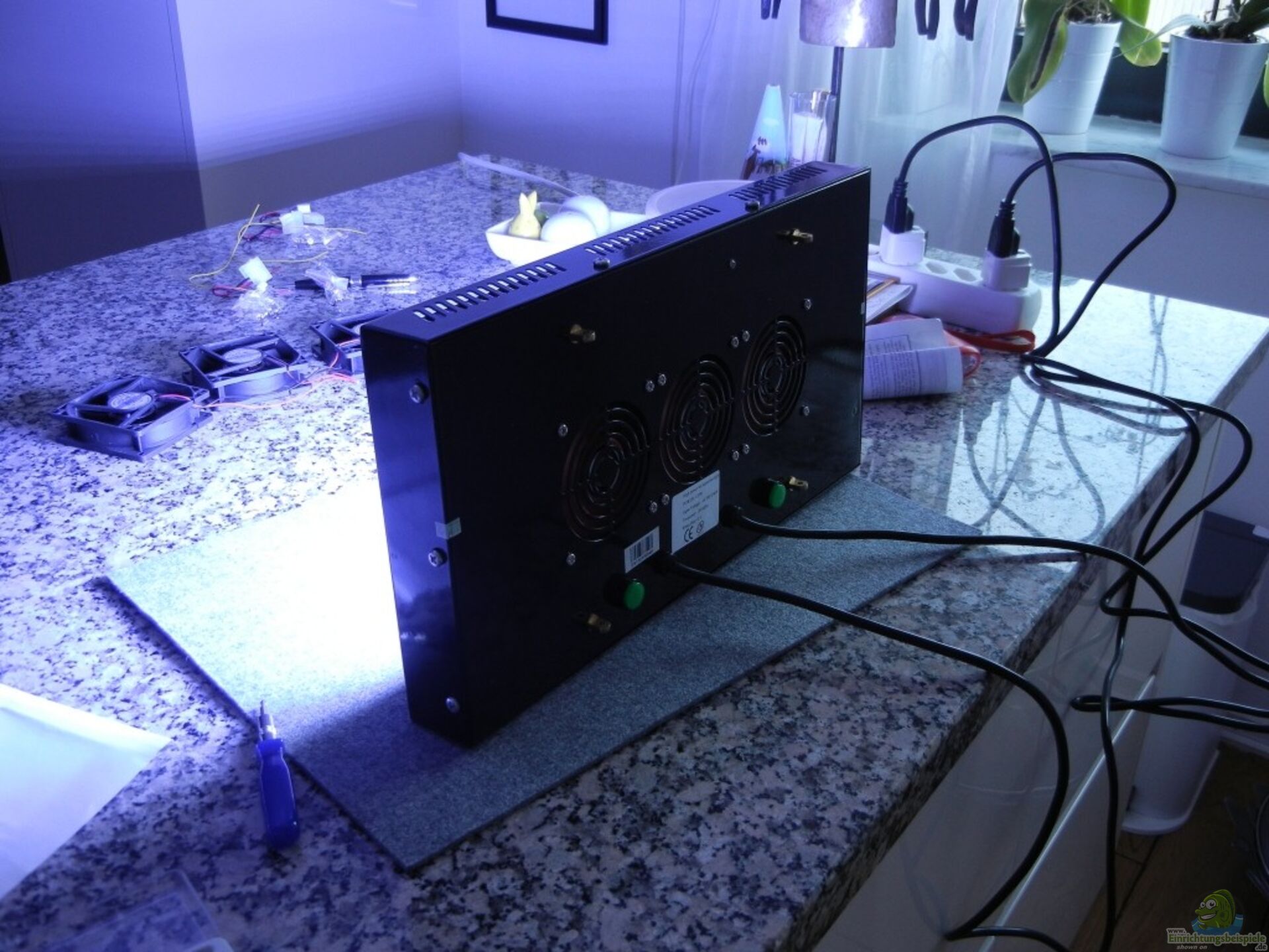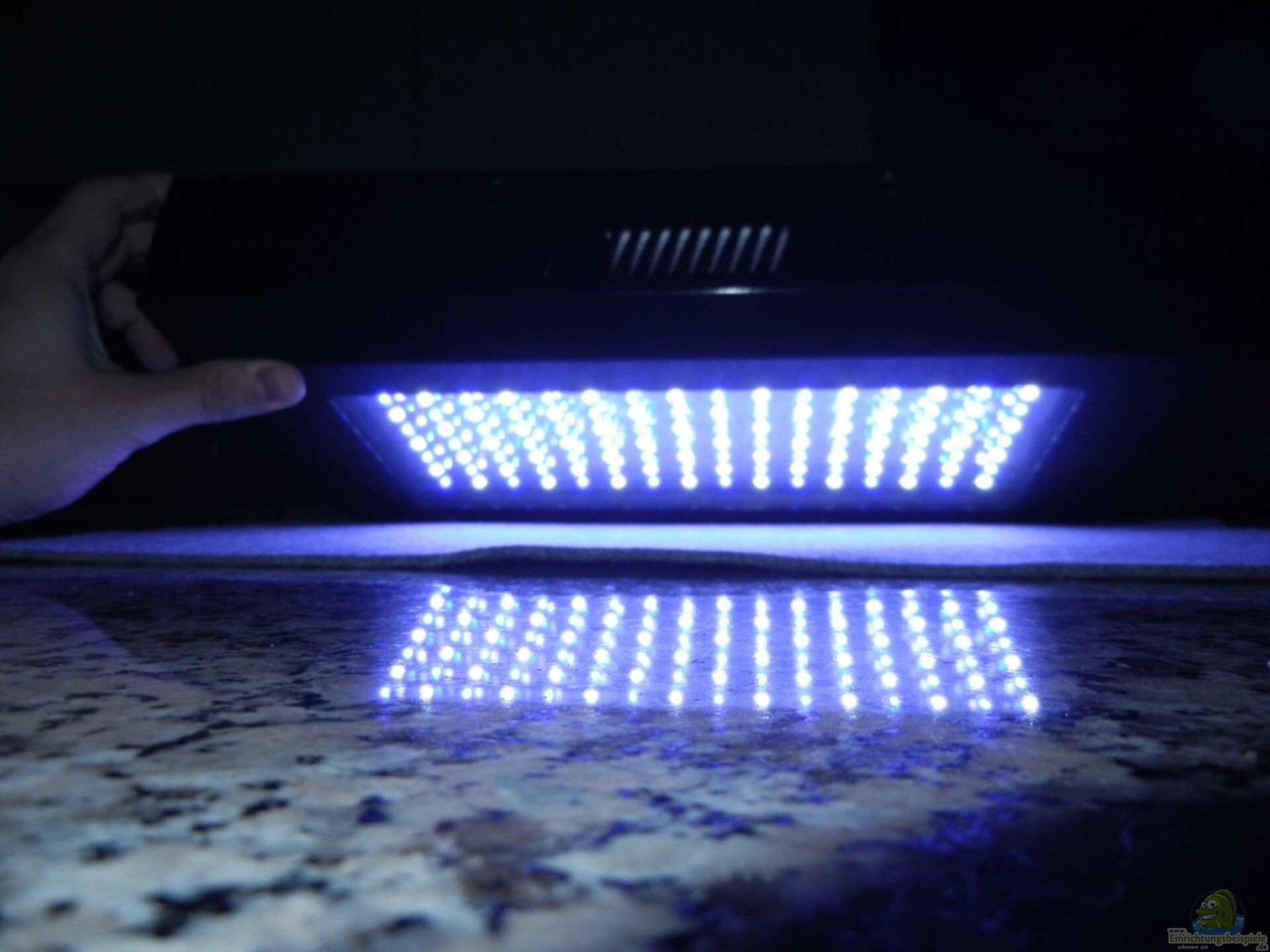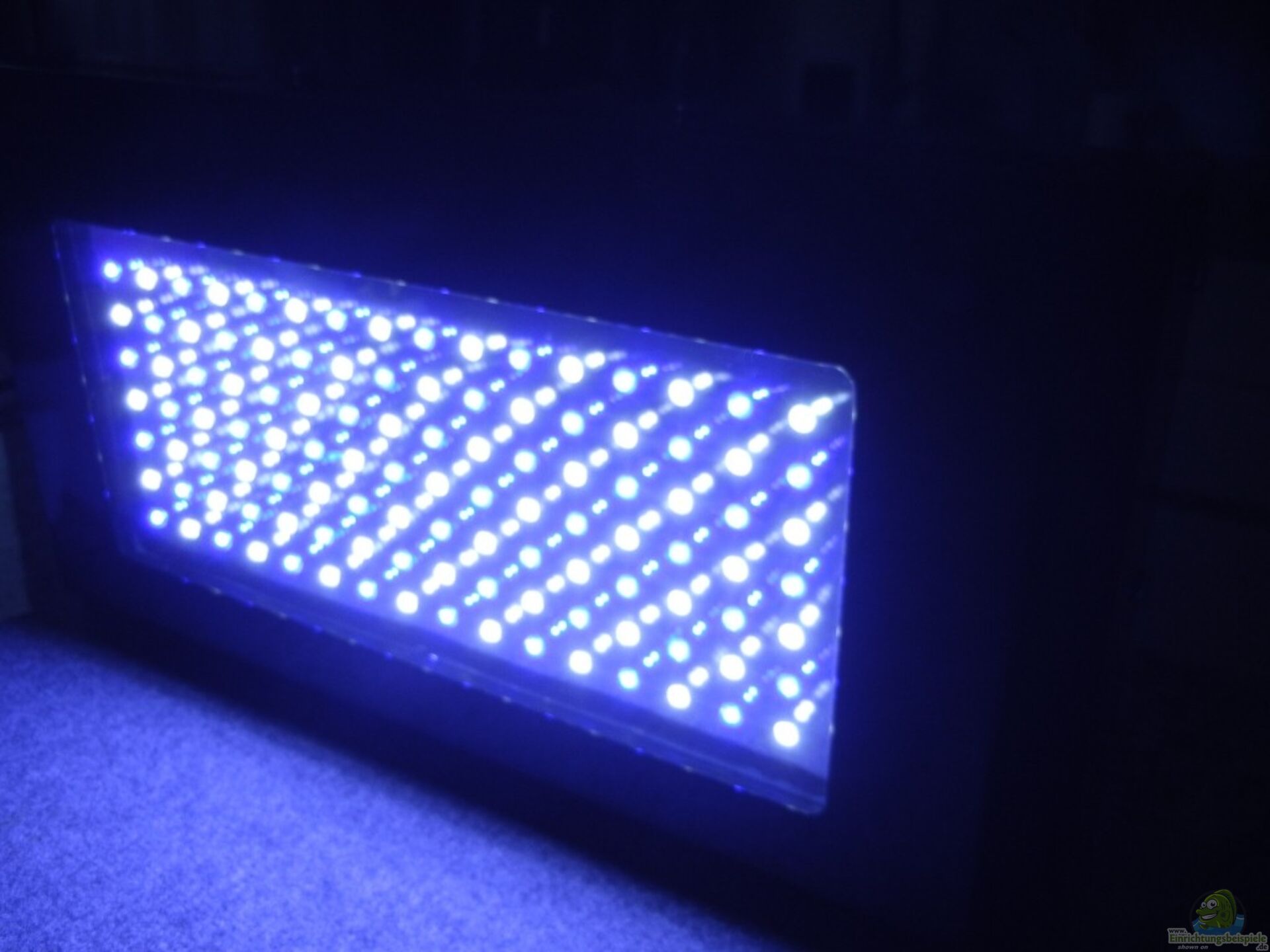 Am ersten Tag war die Beleuchtungsdauer auf 3 std begrenzt, weil ich nicht wei?? wie stark das Licht wirklich ist (Sollen ja um die 8000 lumen für ein 120 W Modul sein und bei einem Wasserstand von 30cm kommen um die 7000 lumen am Boden an.