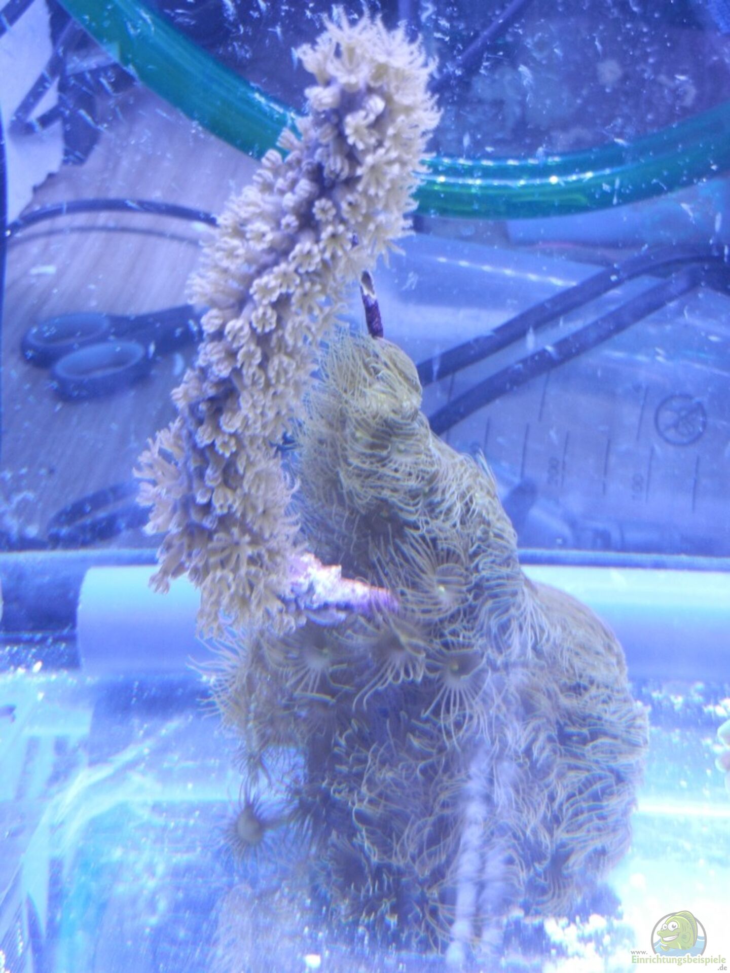 Das hat sich in den letzten 2 Tagen gebessert, so hatte die Gorgonie bereits beim EInschalten Ihre Polypen eingezogen und selbst in der Blaulichtphase am Abend hatte Sie sich geweigert zu öffnen.