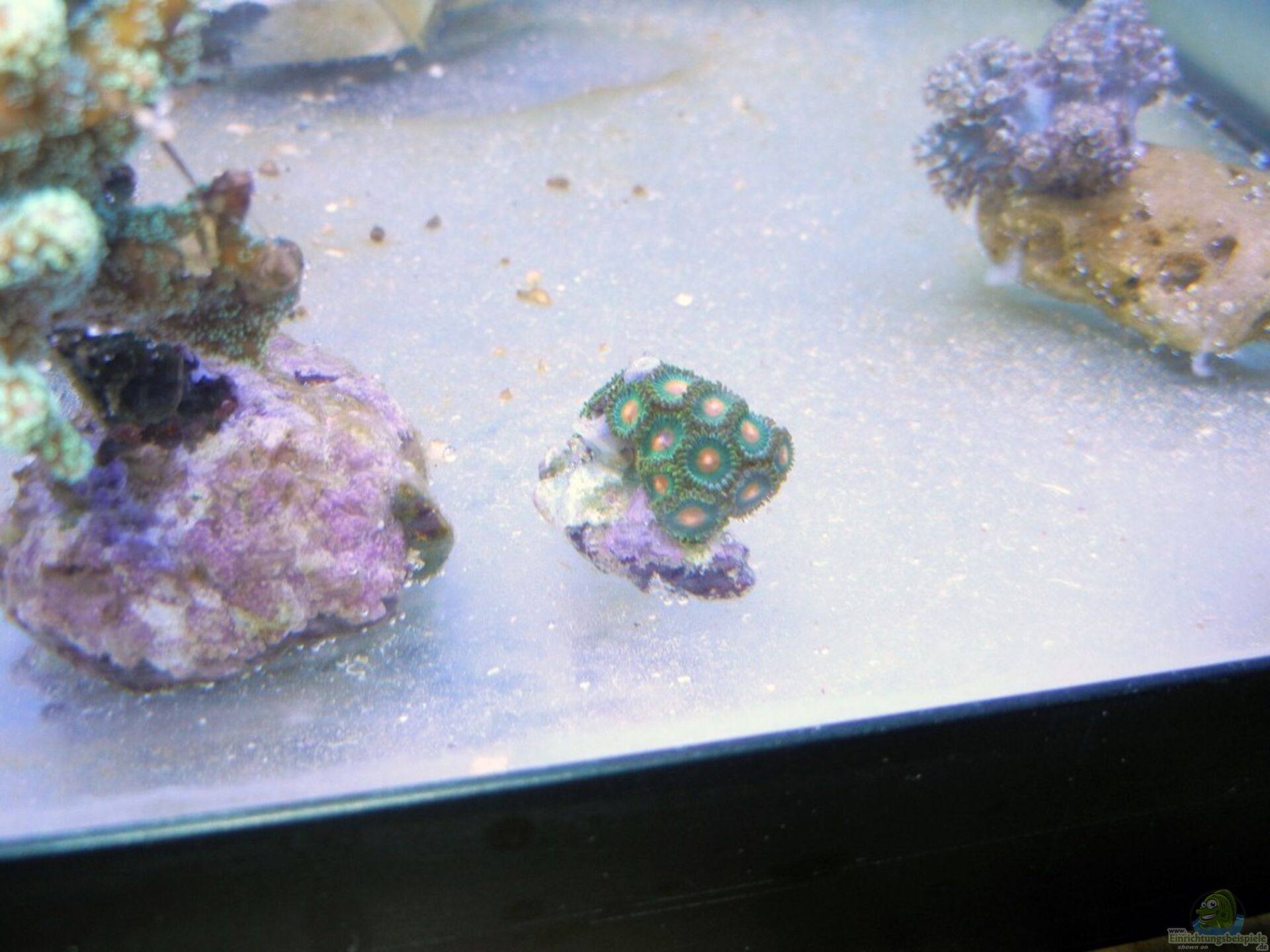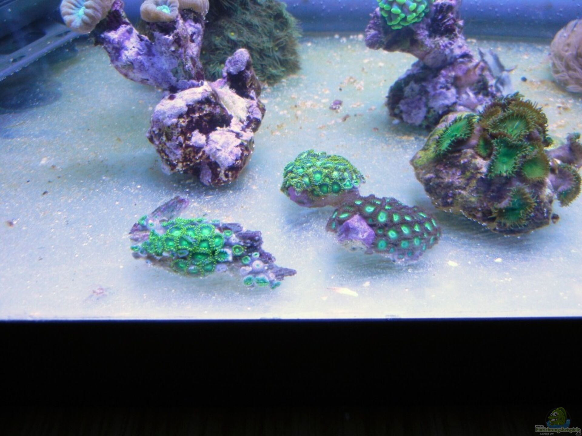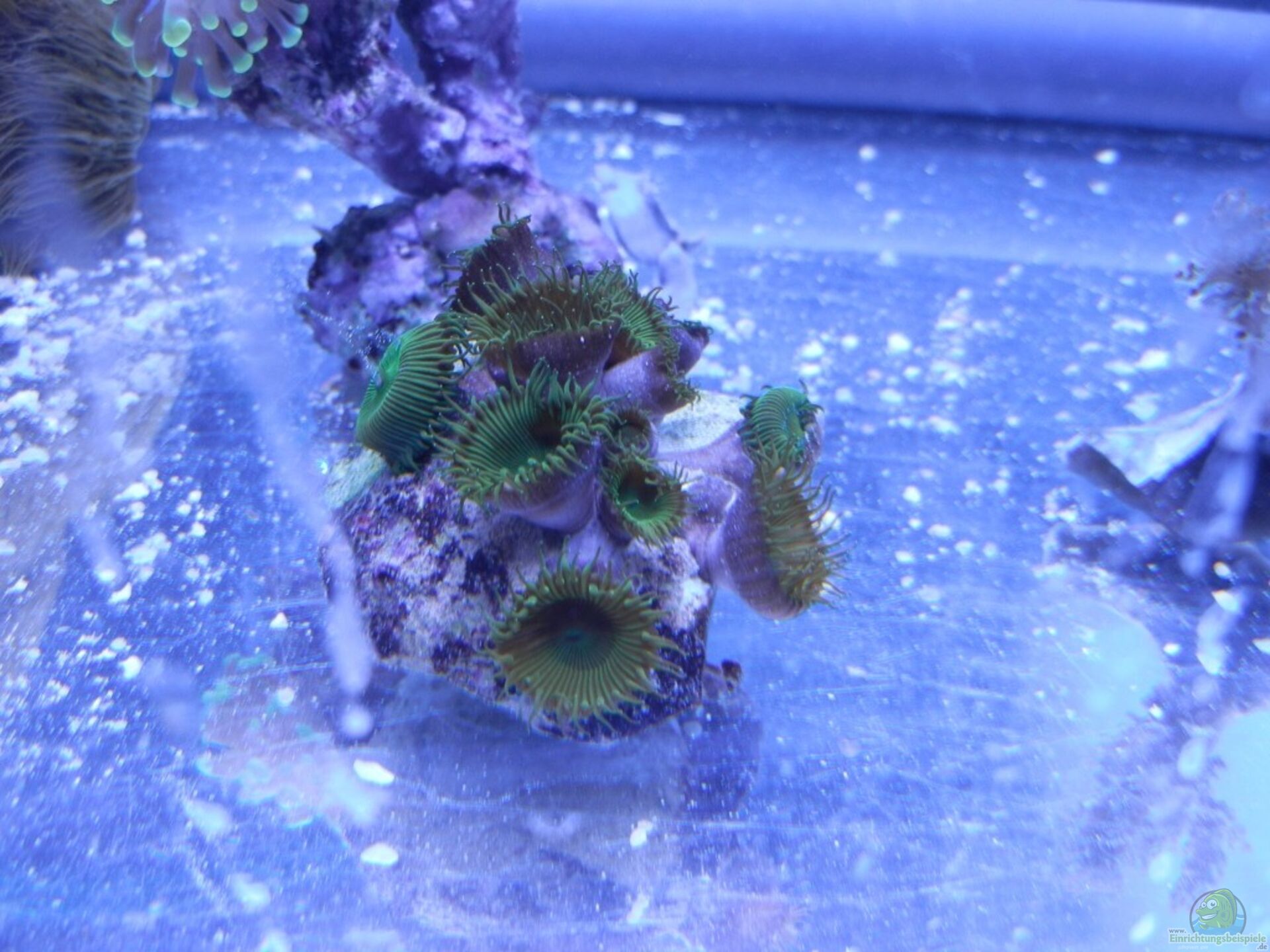 6. Die Parazoanthus wirken so wie immer, sind auch komplett offen. Nur die gelbe Farbe lässt sich mit der Farbkombination nicht so gut darstellen wie unter T5. Werde demnächst rote und blaue Krusten einsetzen, um die Farbgebung zu testen. Grün ist aber wirklich super.