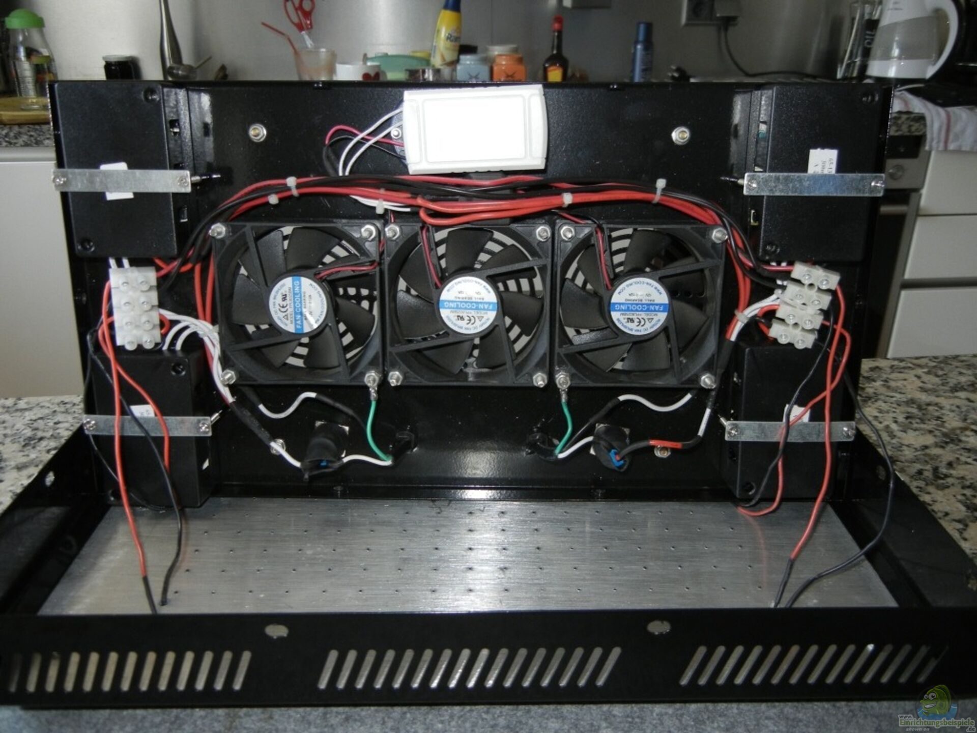 So habe ich gestern Montag bereits 3x 80x80mm Lüfter von Xilence bei eBay bestellt (Kostenpunkt 9, 97 EUR inkl. Versand). Die haben nur 15dB, so komme ich bei 3 Lüftern auf maximal 20 dB bei Vollast. ??berlege mir einen Dimmer zwischenzuschalten, da in Sommertagen die Belüftung ruhig auf 100% laufen kann und in Wintertagen 70% vollkommen ausreichen. Man kann auch, wenn man Lust hat, einen Temperatursensor an dem Kühlkörper befestigen und die Temperatur kontrollieren.
