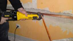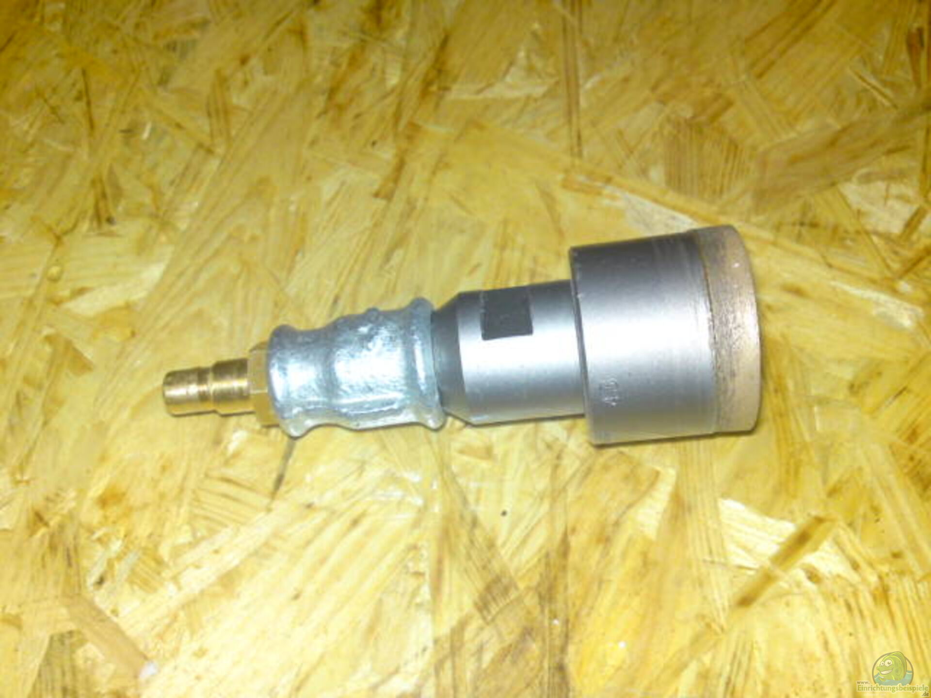 Die Aufnahme für den Glasbohrer ist übrigens auch selbst gebaut, aus einer 1/2" auf 1/4" Rohrreduzierung und einem 1/4" Luftanschluss der auf 13mm runtergefeilt wurde, damit er in die Aufnahme des Bohrhammers passt.